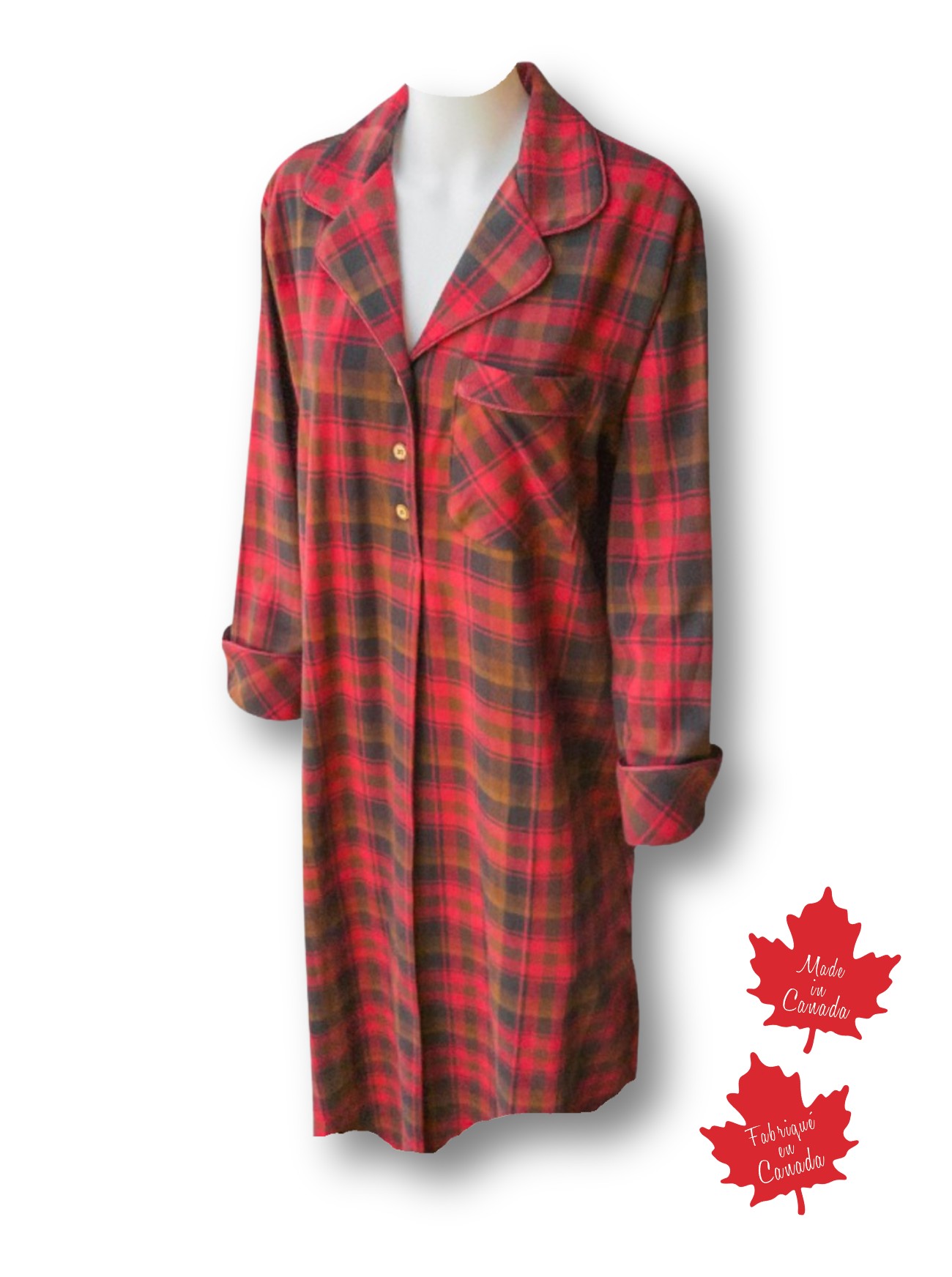 1001 / Woman's Knee Length Flannel Nightshirt in Maple Leaf Tartan Made In Canada