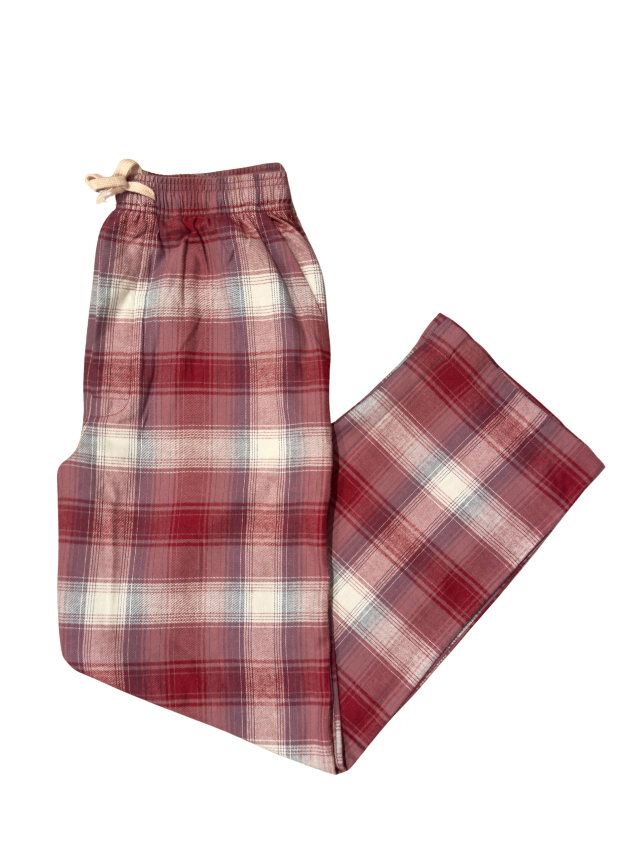 Ladies Flannel Lounge Pants in Burgundy and Rose Plaid