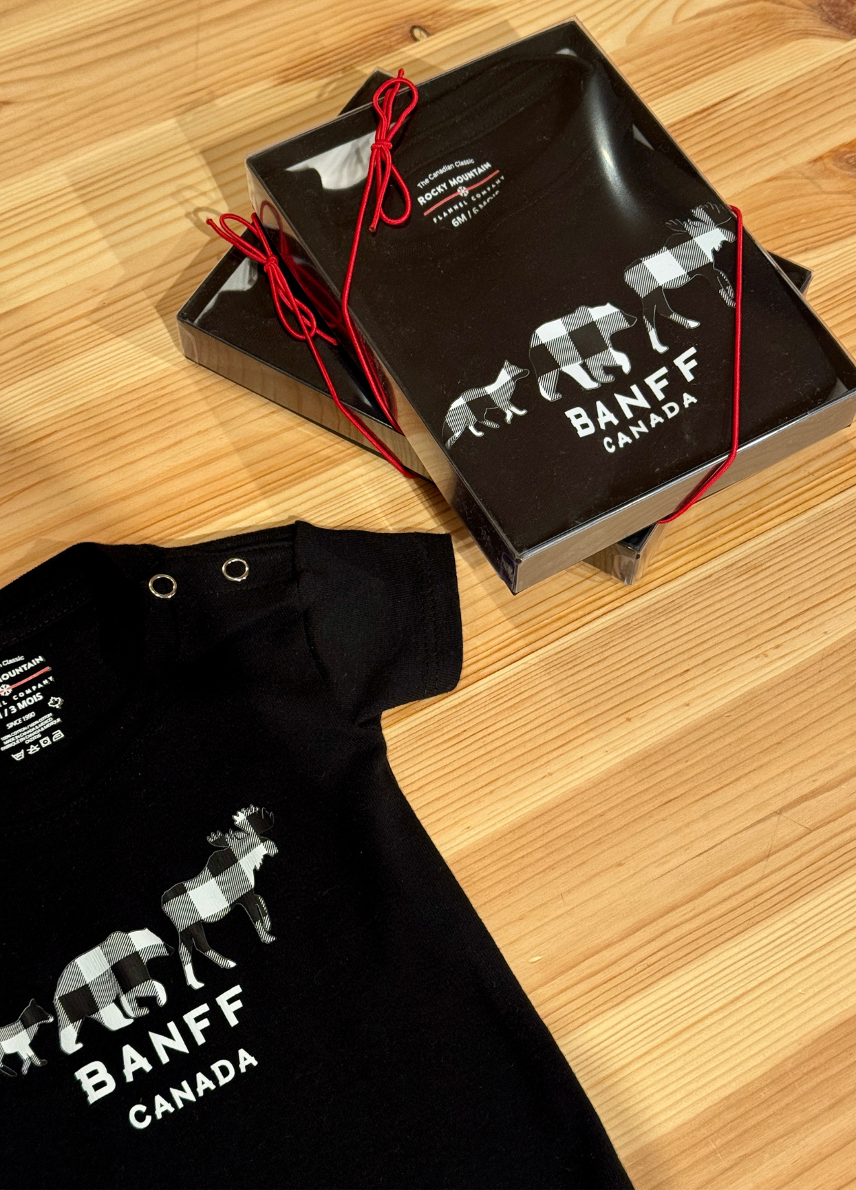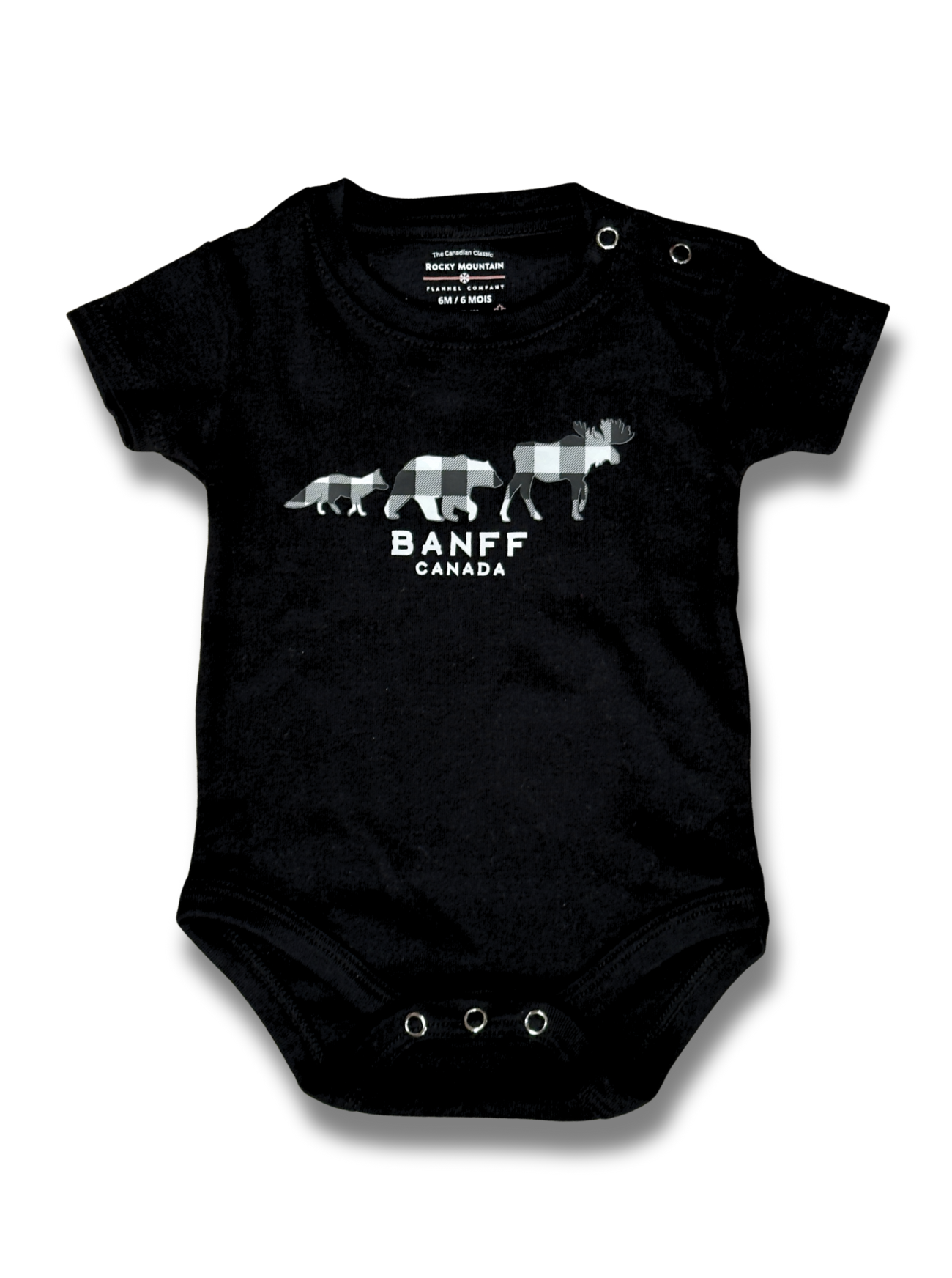 Banff Baby Onesie Black - Soft Cotton Bodysuit with Wildlife Print