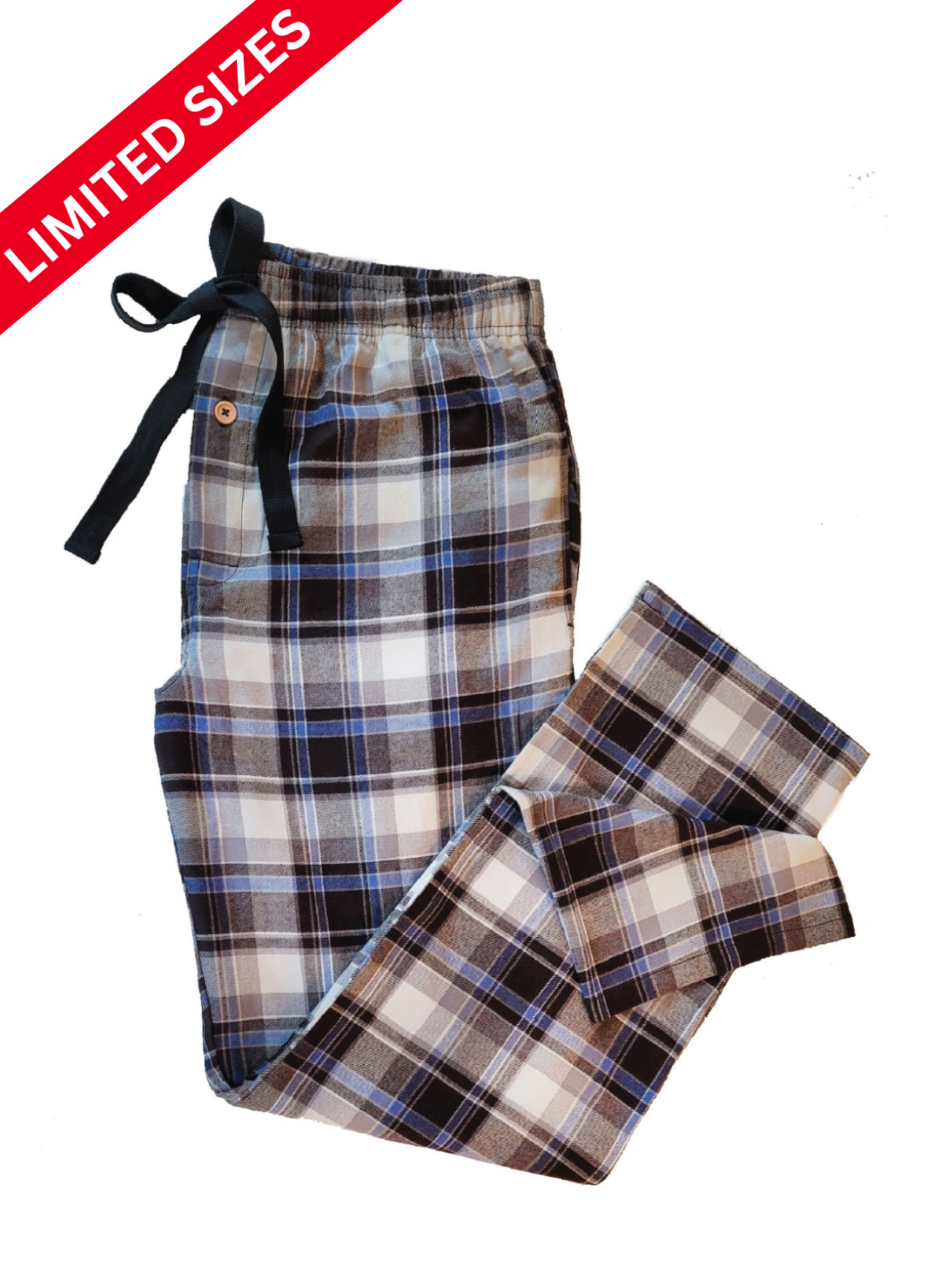 Men's Flannel Lounge Pant / Brown With Wedgewood Blue Accent