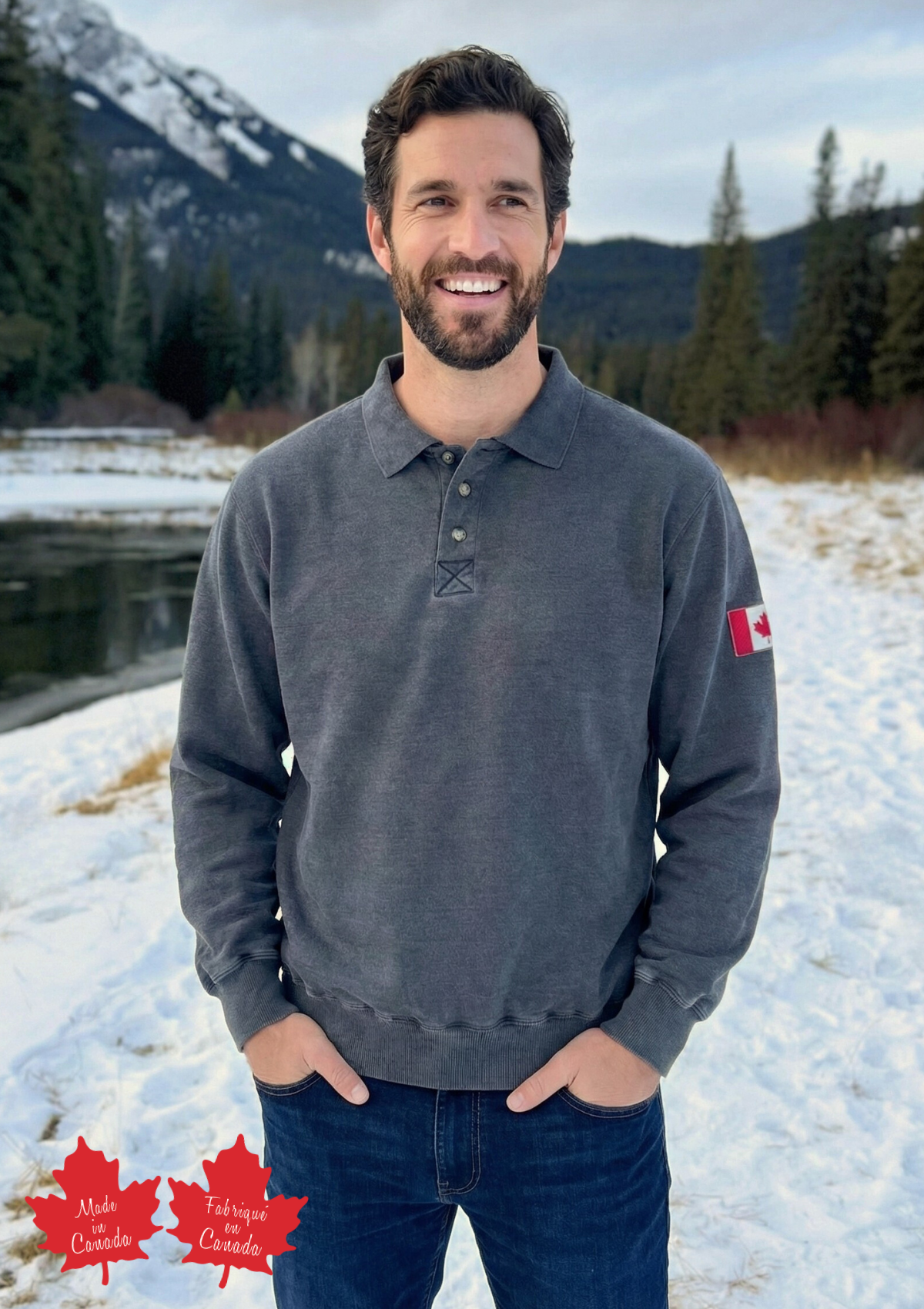 Who needs to search high and low for the perfect polo sweatshirt when this Polo is right here? This gender-neutral beauty offers a classic fit with relaxed, durable 1x1 rib cuffs and waistband. Made in Canada from our signature 16oz fleece, it’s soft, smooth, and always ready to move with you. And if you want a bit more room, just size up! The Yukon Polo is built to last and is anything but boring. Your new favourite staple awaits!