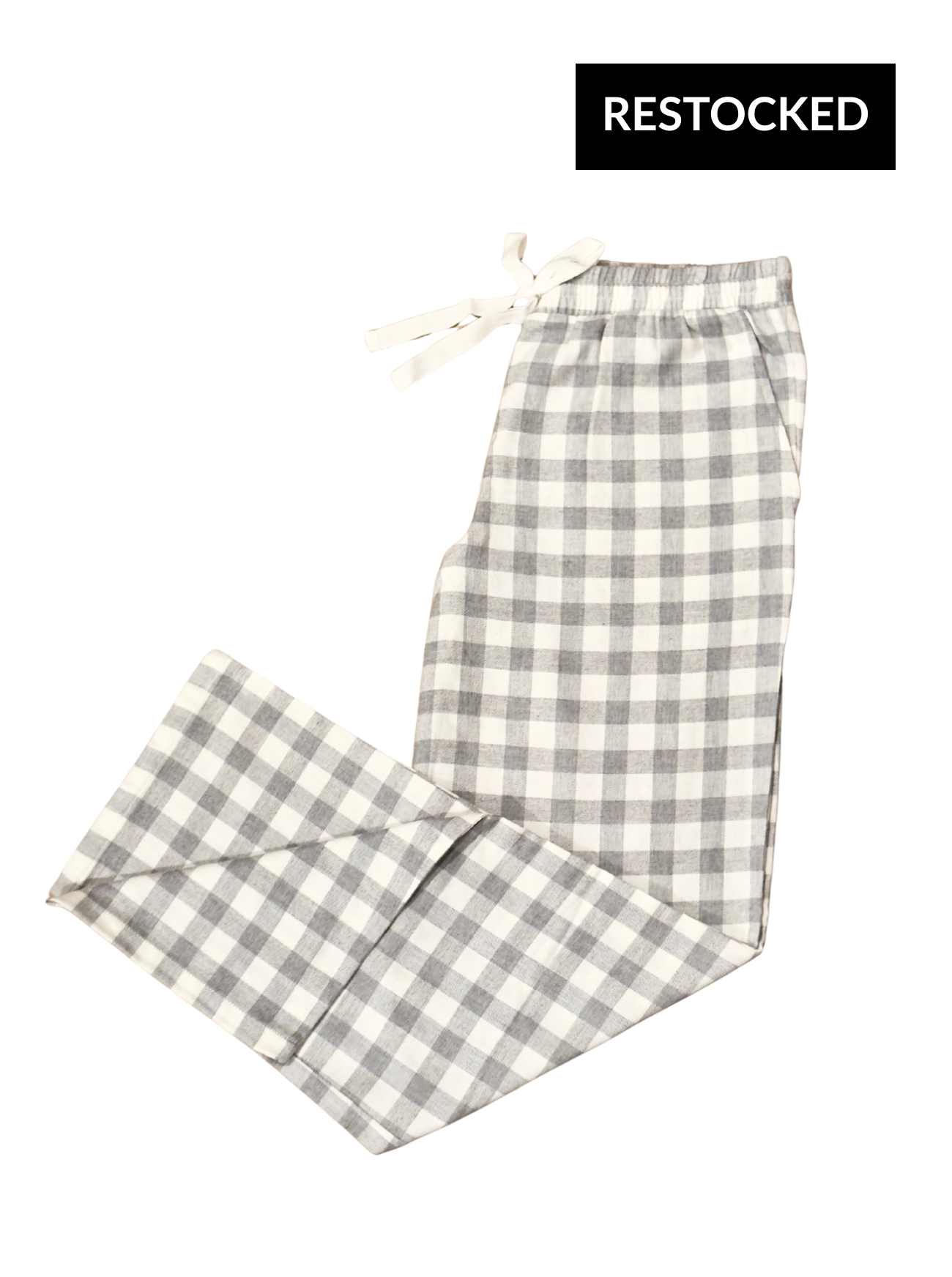 Ladies Flannel Lounge Pants in Light Grey Buffalo Check