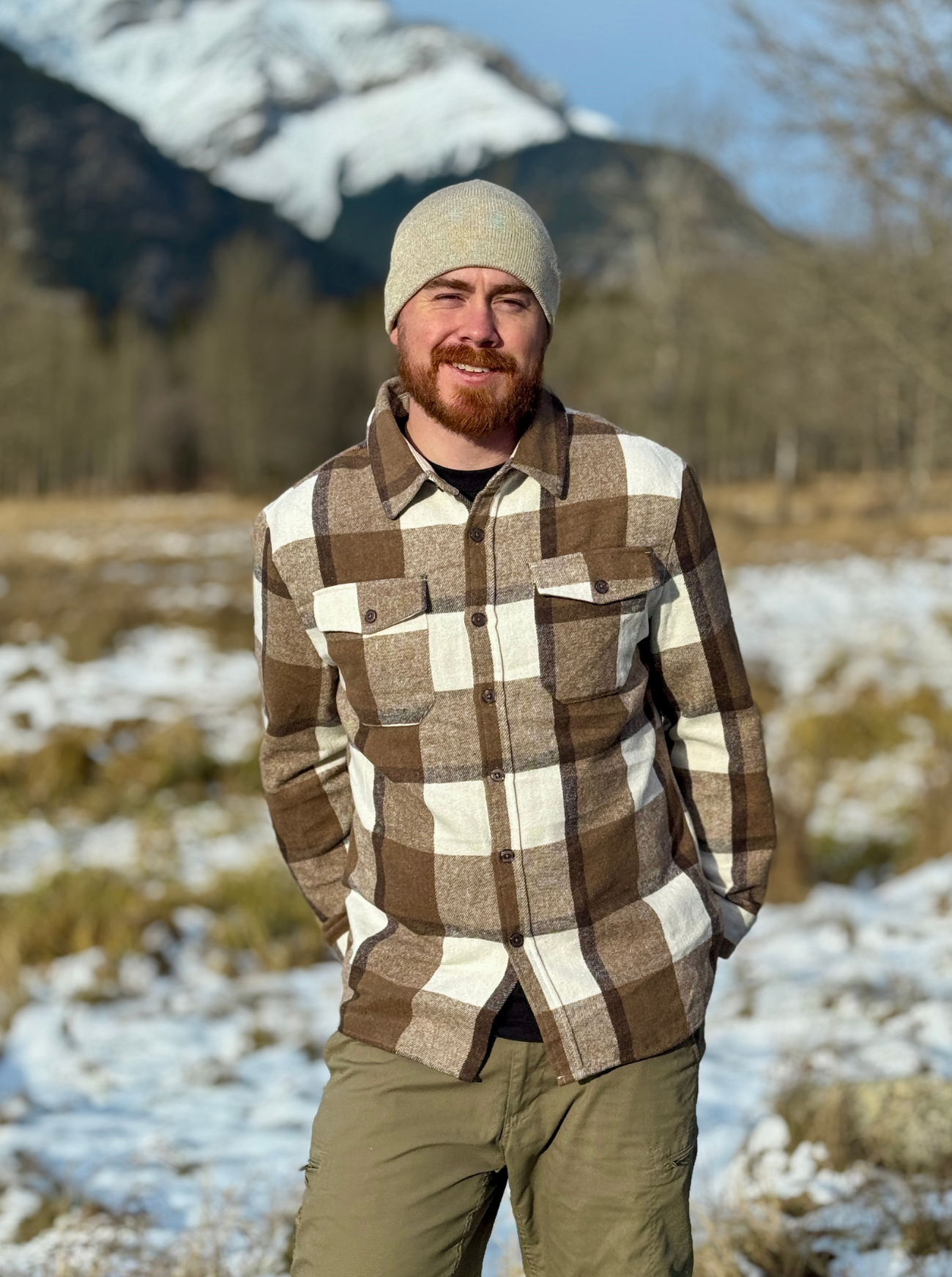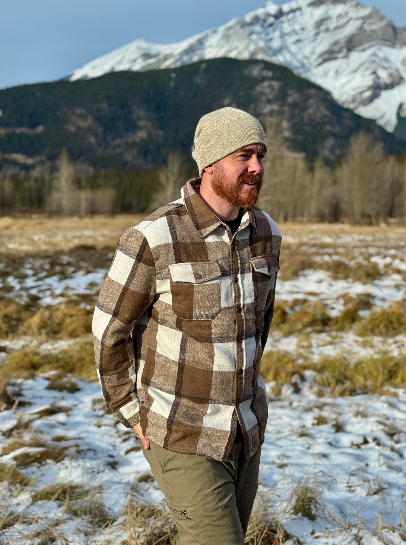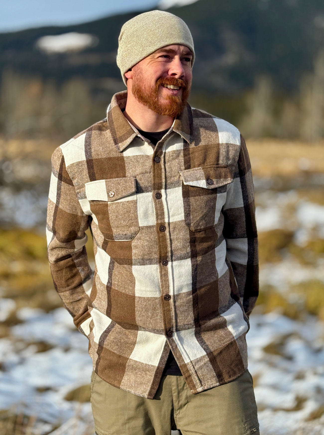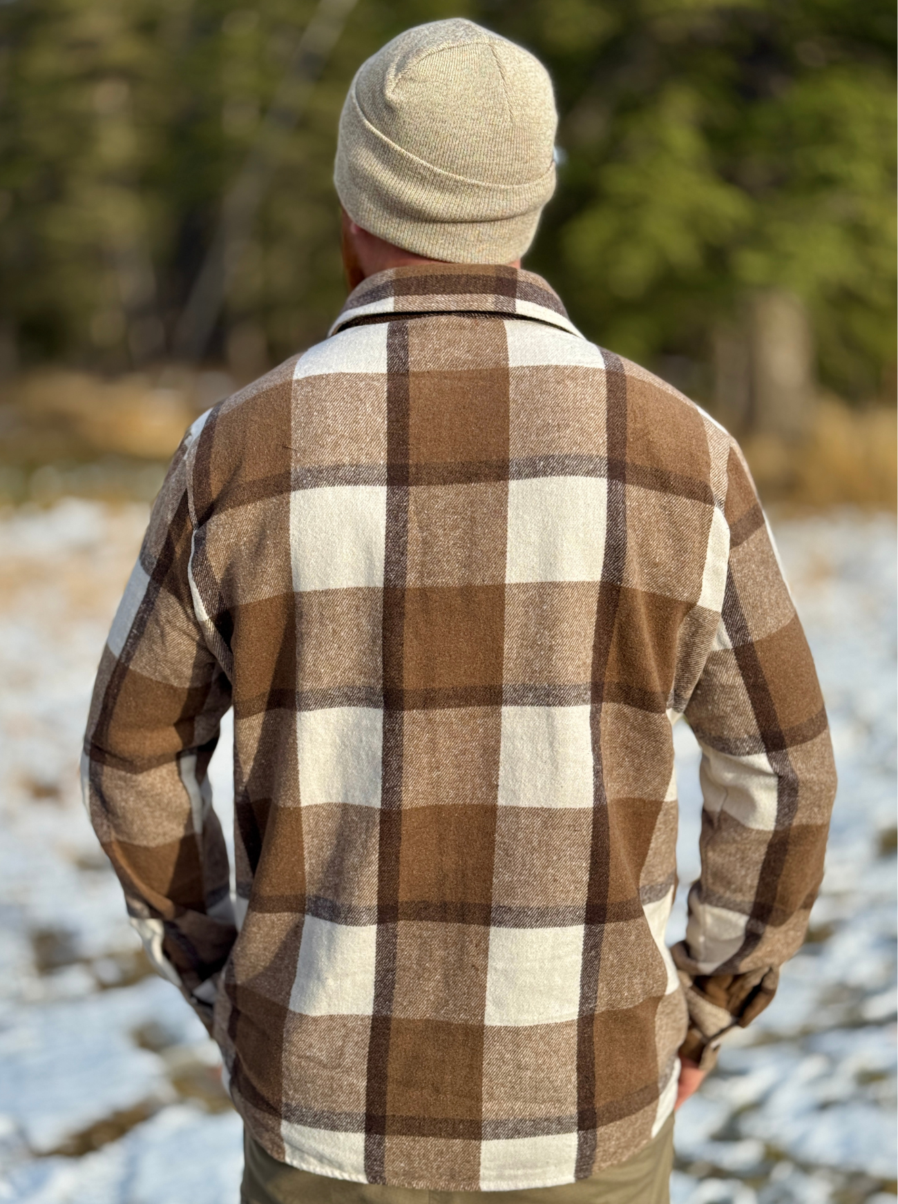 Mocha Squares Brushed Flannel Unisex Shacket