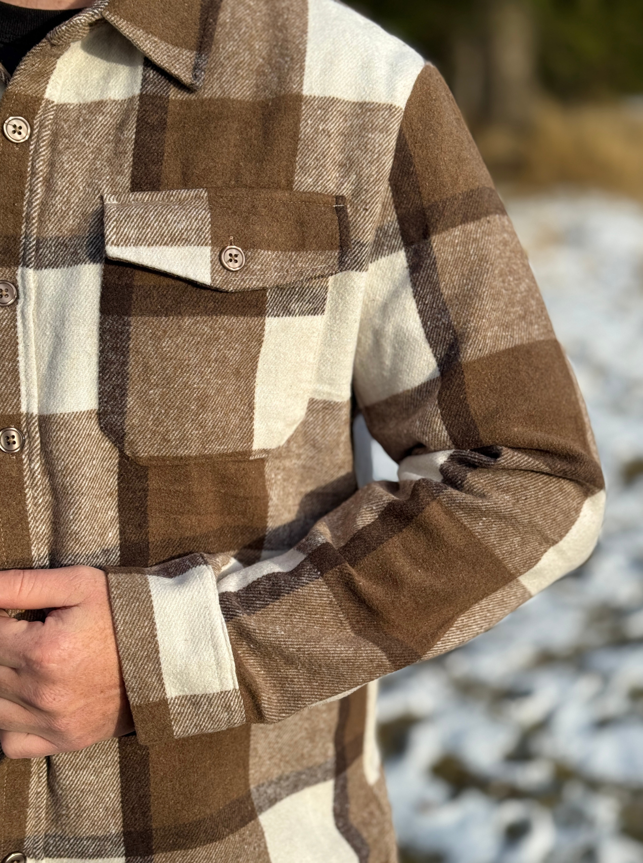 Brush Flannel Shacket / Mocha Squares
