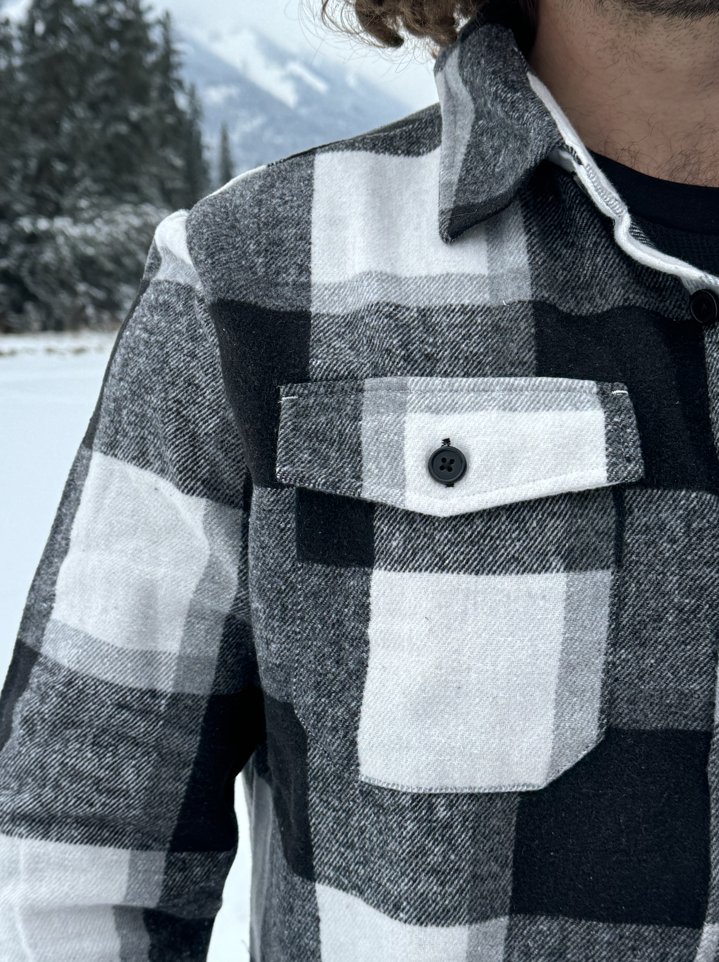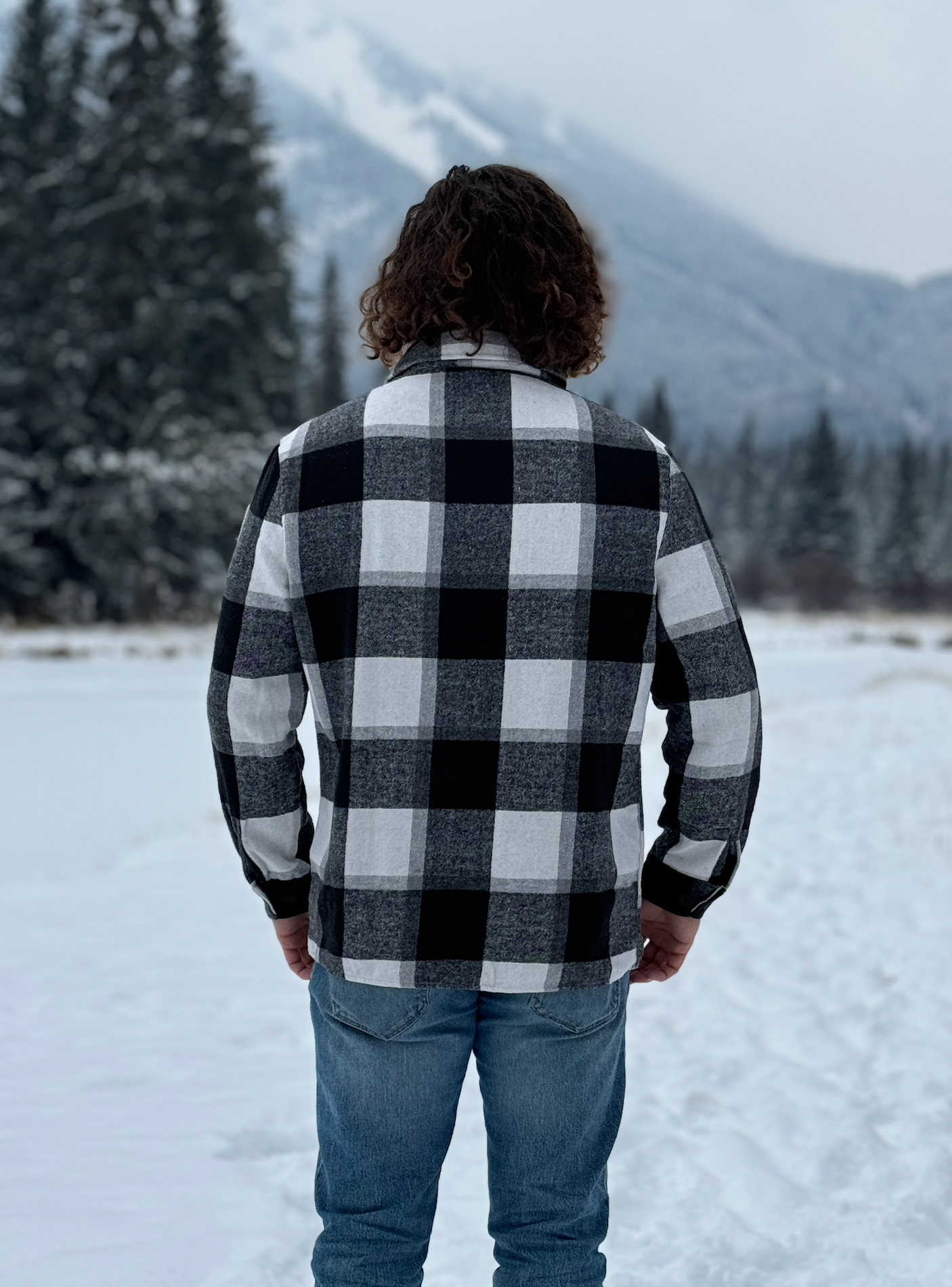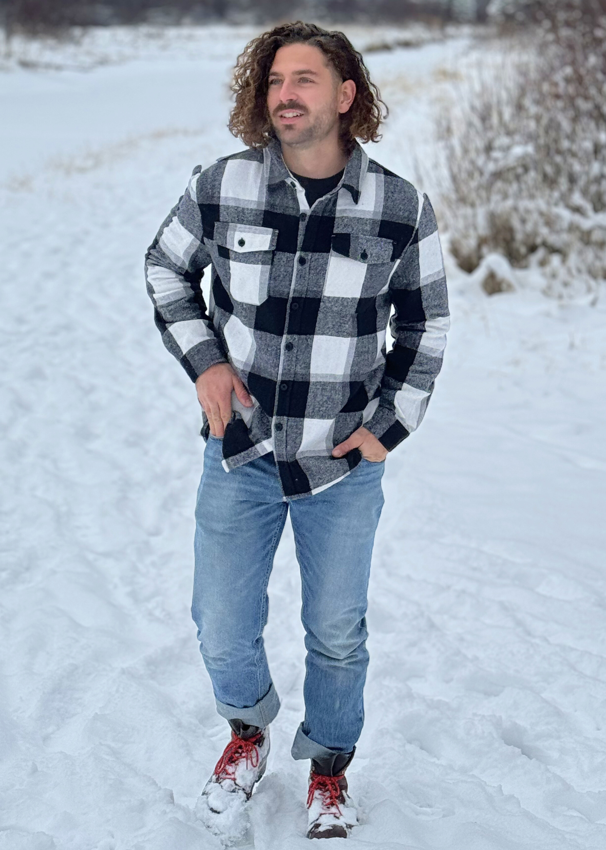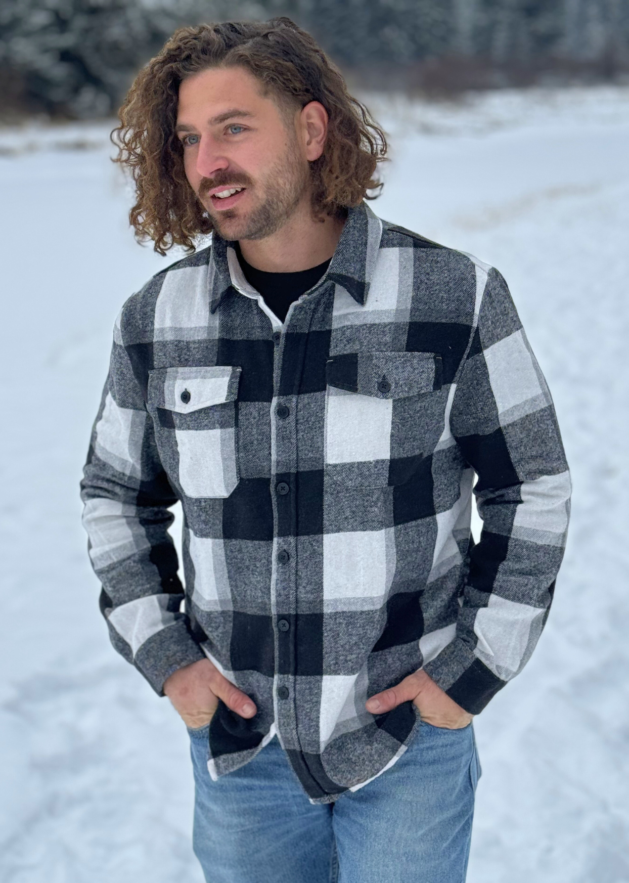 Brushed Flannel Shacket in Black and White Buffalo Check