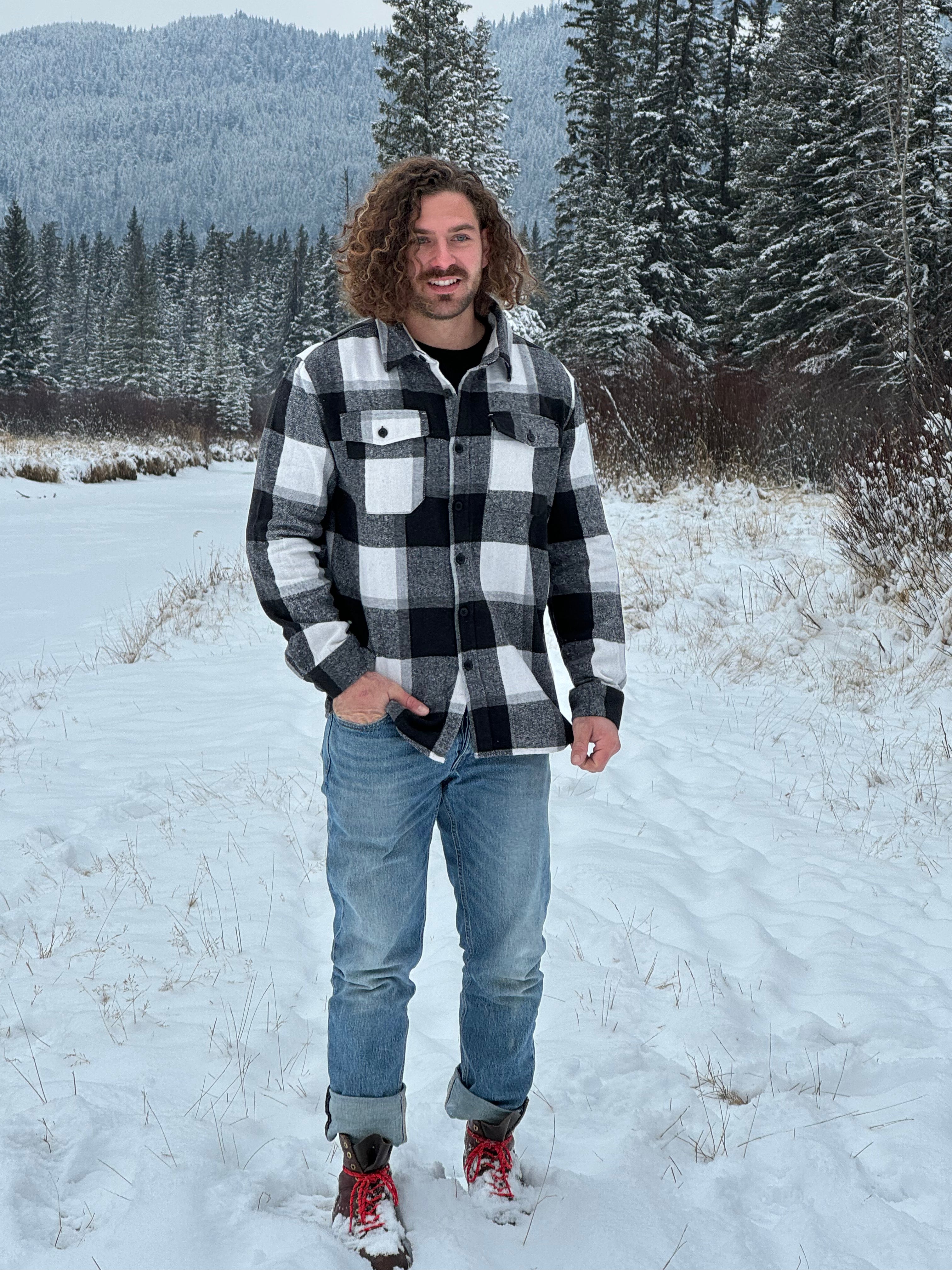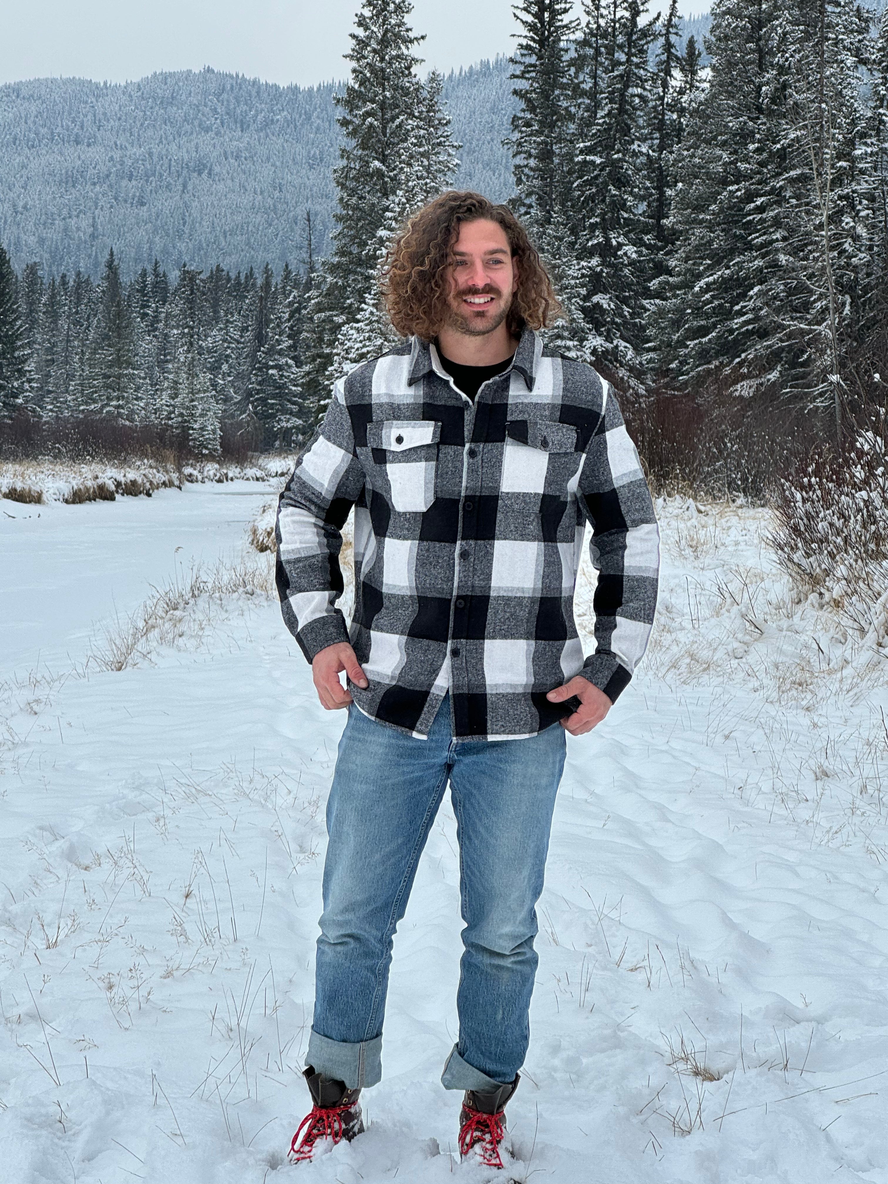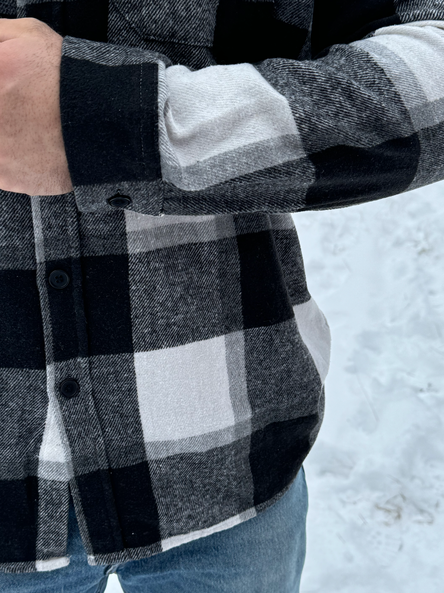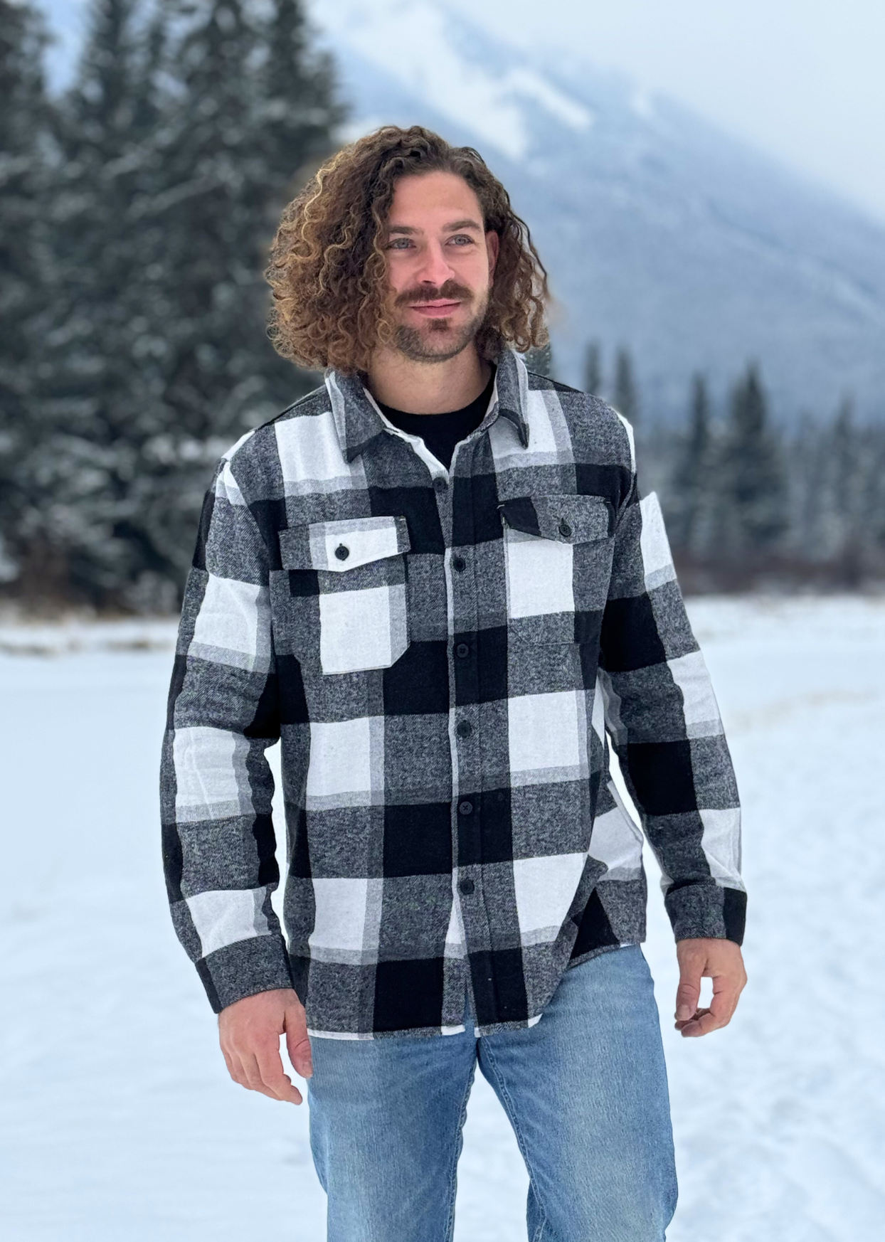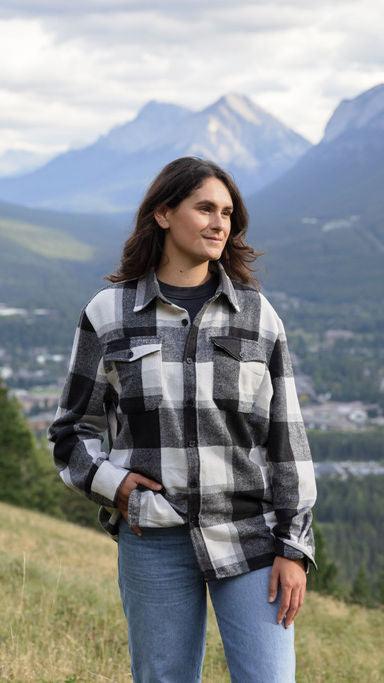Brushed Flannel Shacket in Black and White Buffalo Check