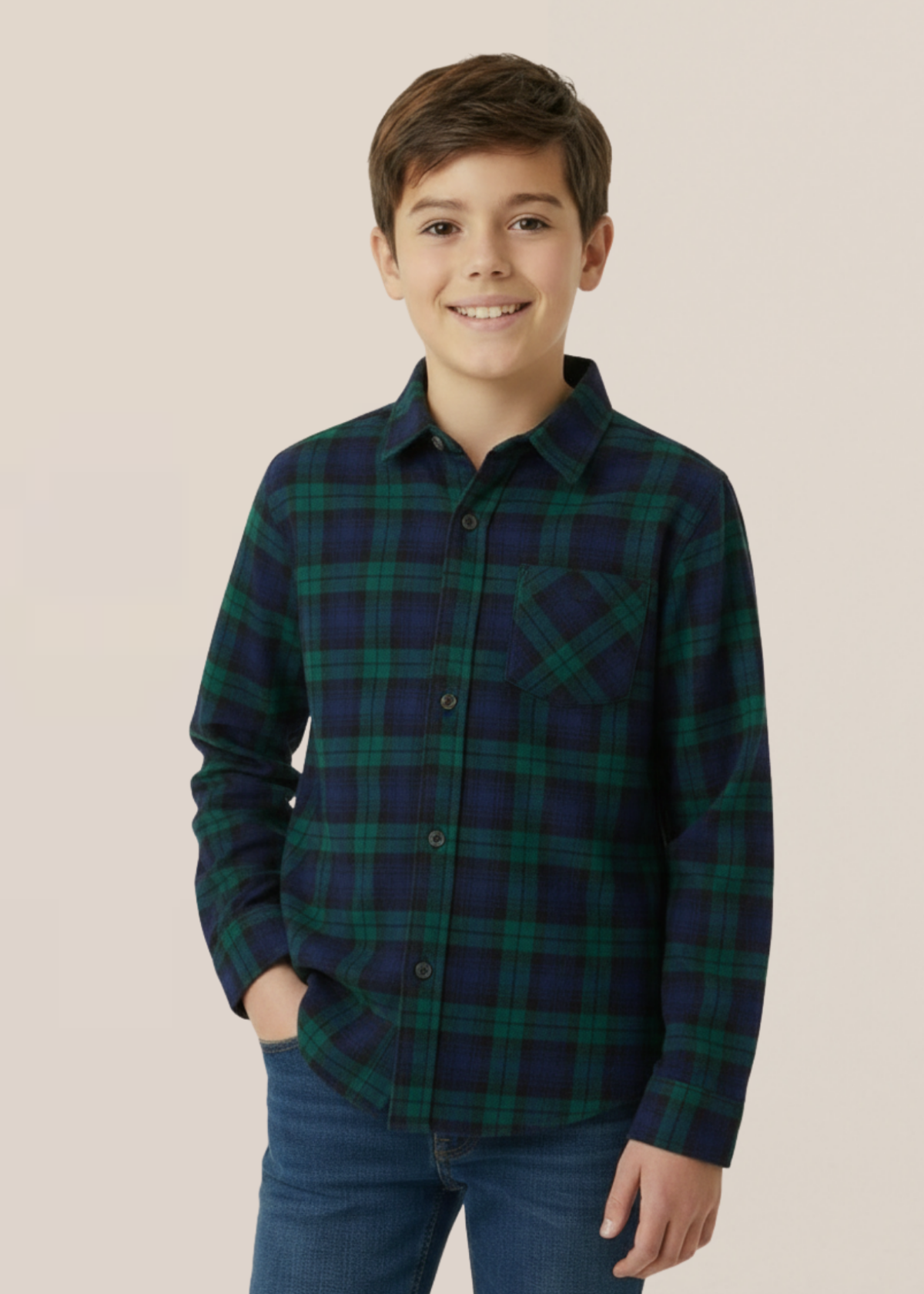 Kids Unisex Black Watch Tartan Flannel Shirt