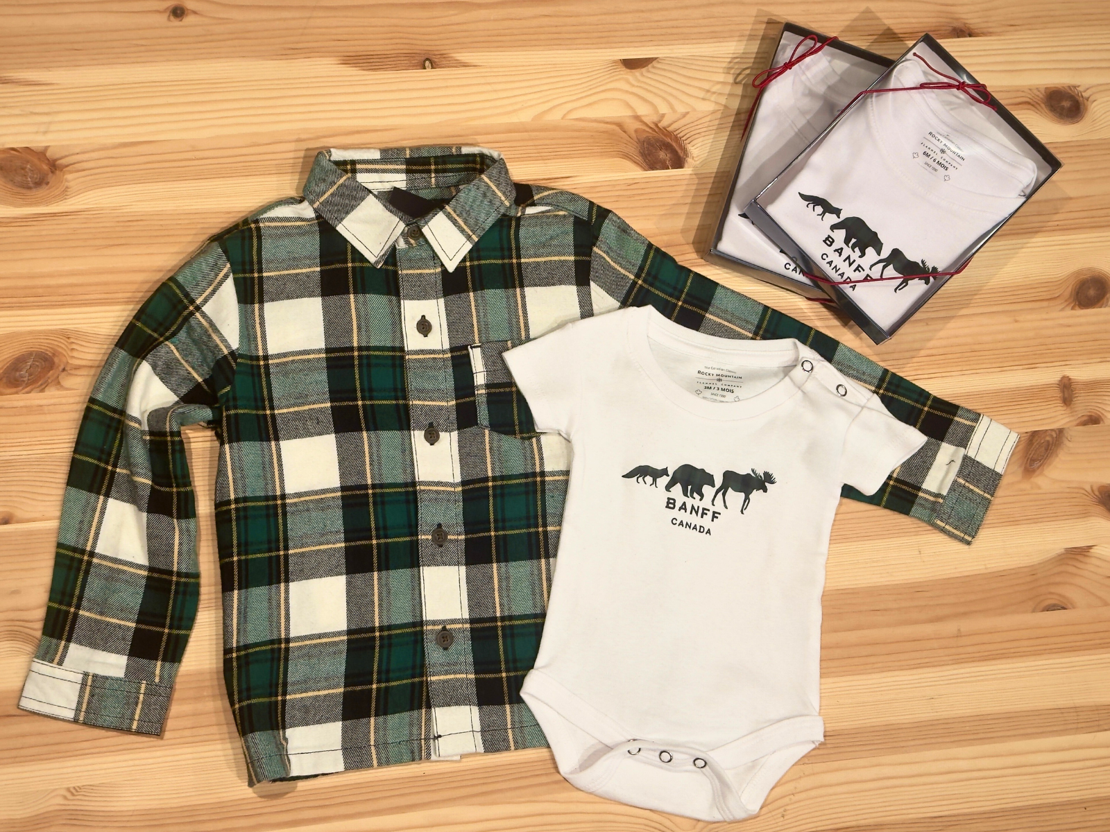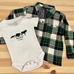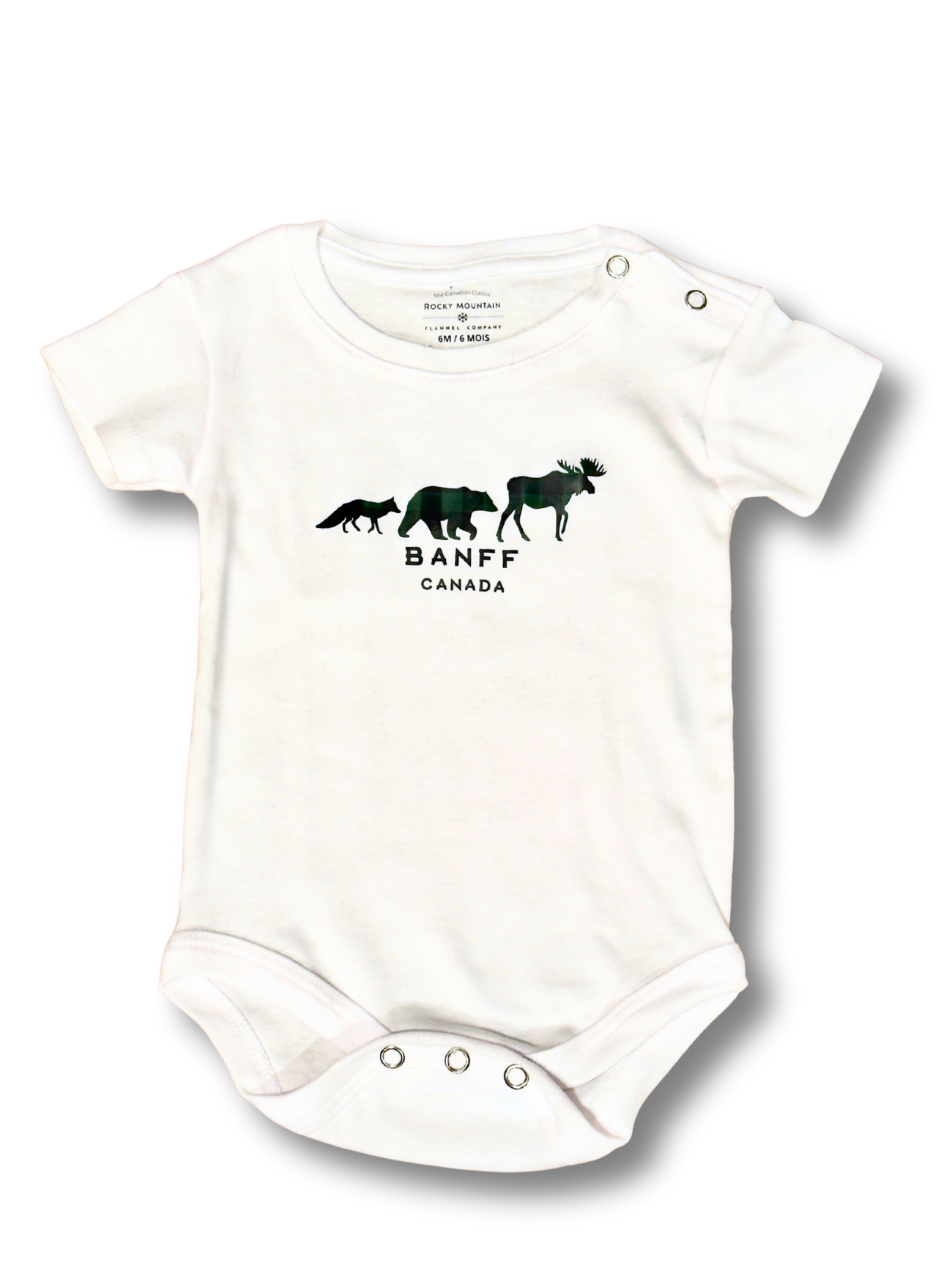 Bring a touch of the Canadian Rockies to your little one's wardrobe with our Banff Baby Onesies. A cozy, unisex baby bodysuit made from 100% cotton. The design features three famous Canadian Animals - Moose, Bear and a Fox.