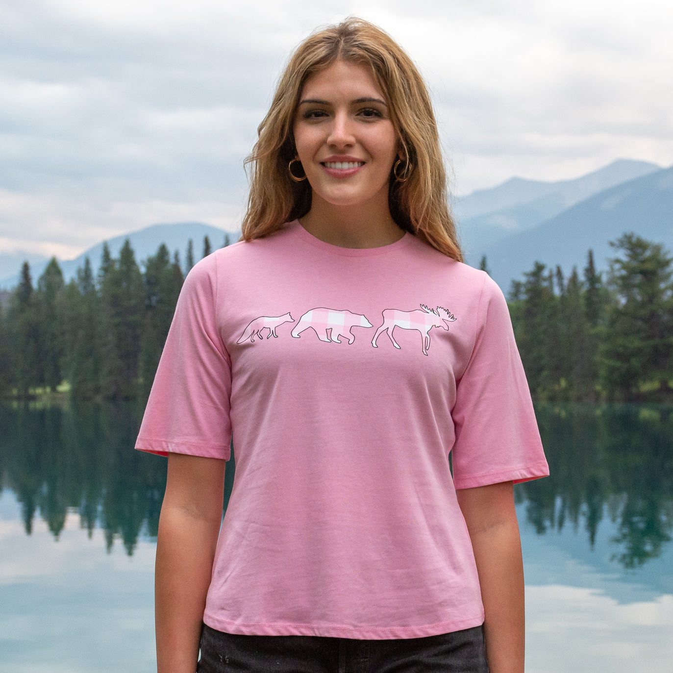 Ladies Petite Fit Pink 3 Animal T-Shirt