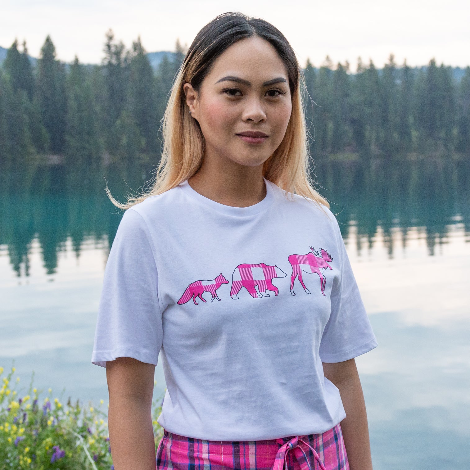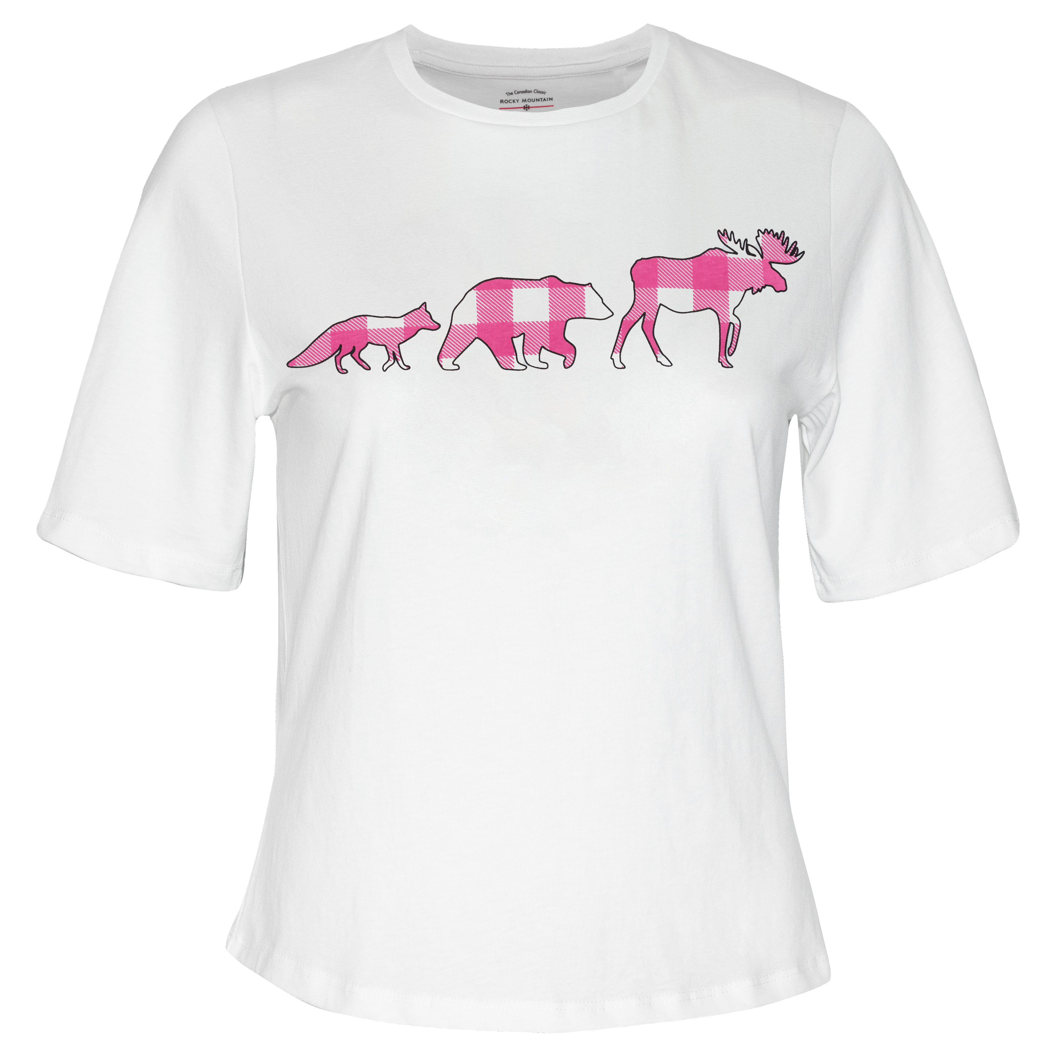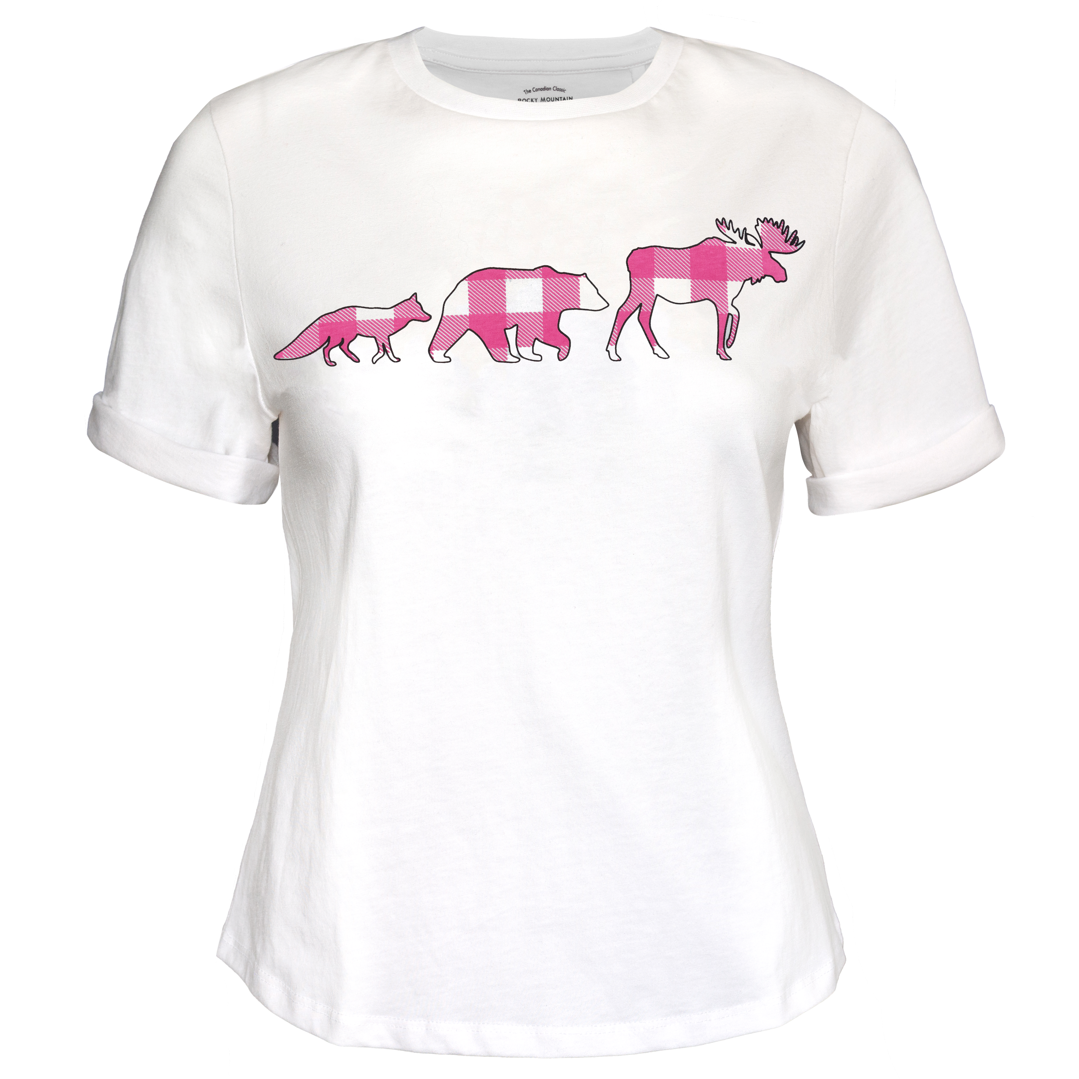 Ladies Petite Fit White with Pink 3 Animal T-Shirt