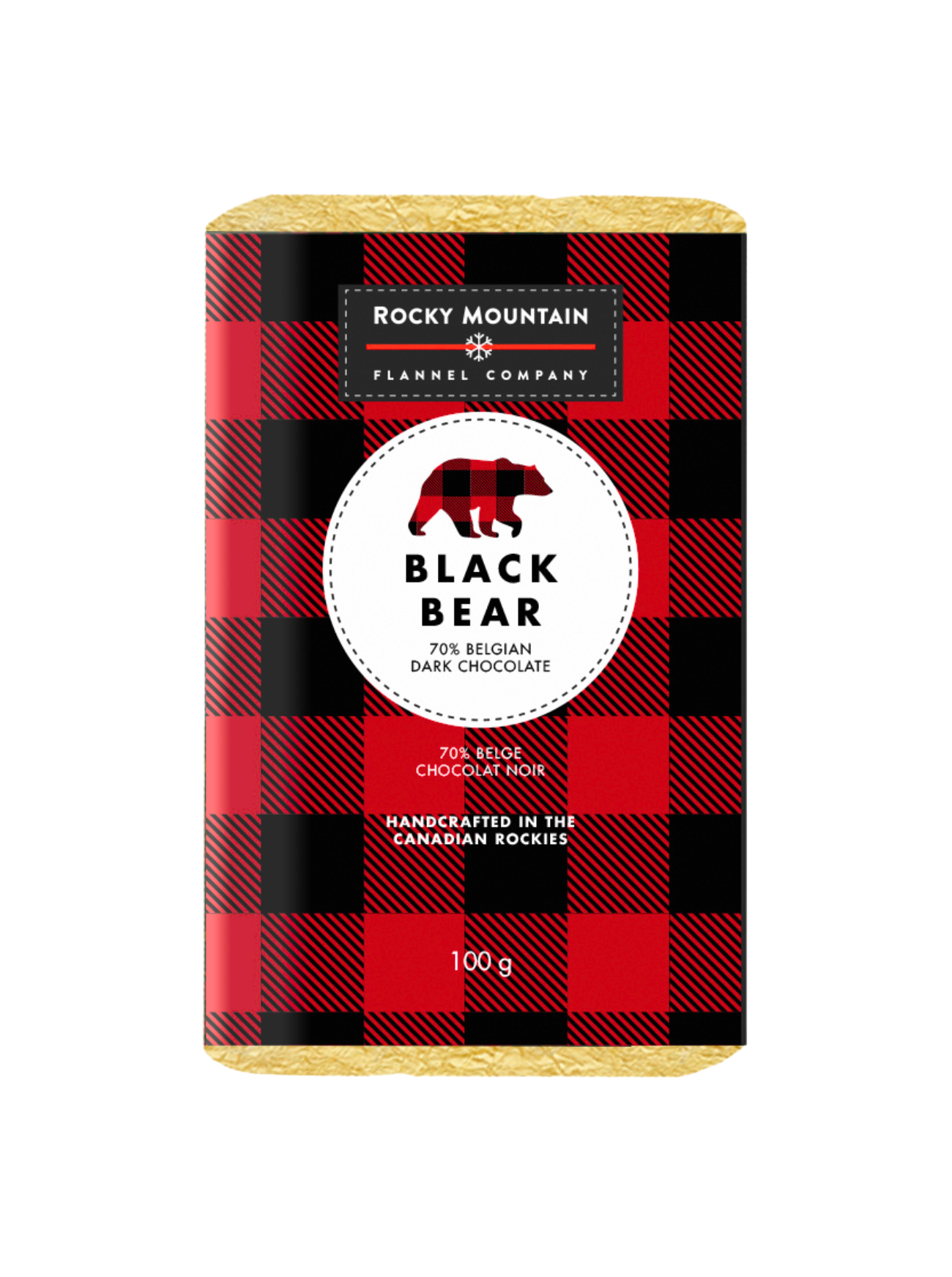 Black Bear chocolate bar with 70% Belgian dark chocolate.