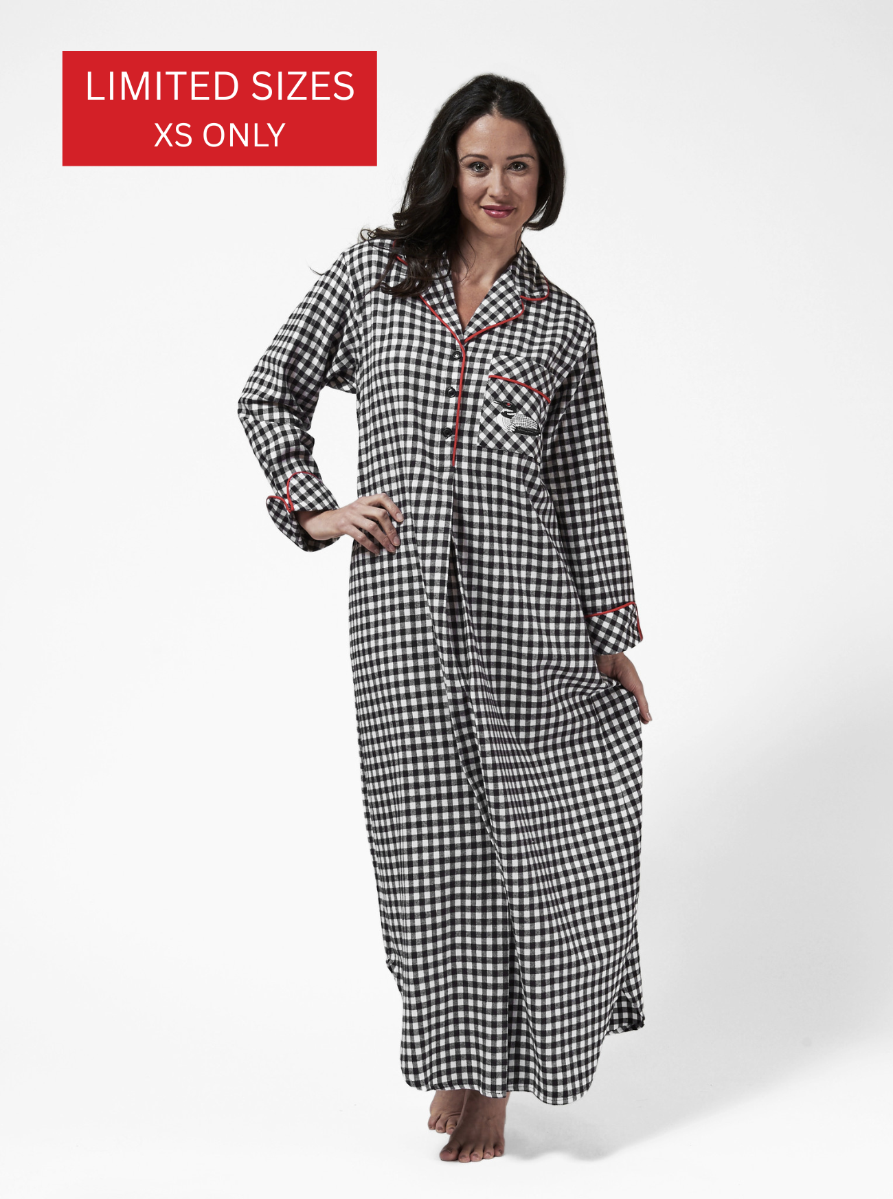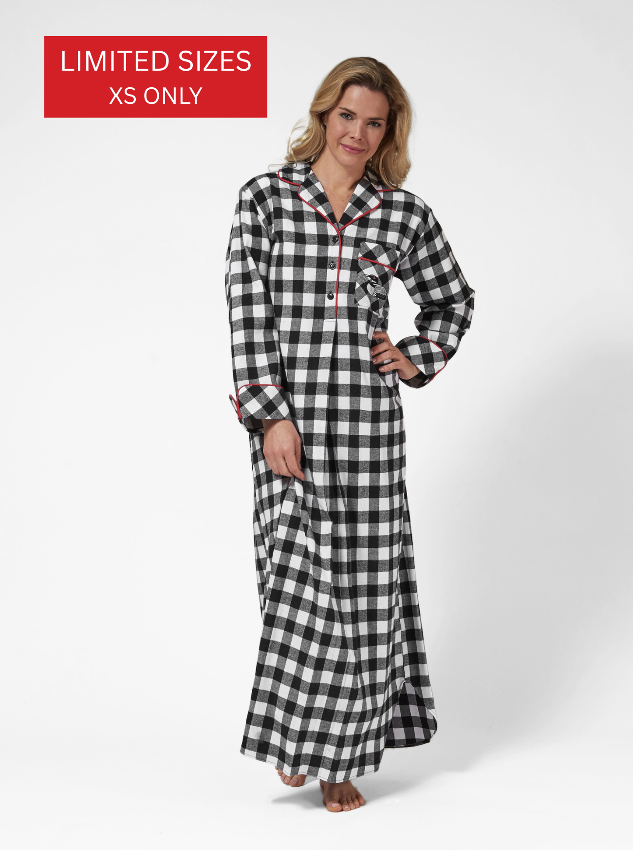 1003 / Woman's Long Flannel Nightshirt / Small Buffalo Check with Loon Logo