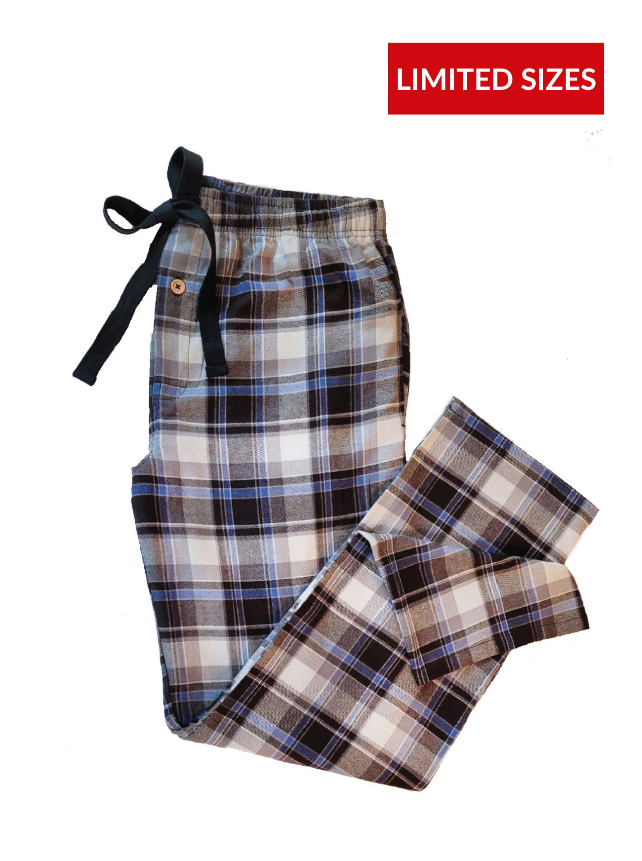 Men's Flannel Lounge Pant / Brown With Wedgewood Blue Accent
