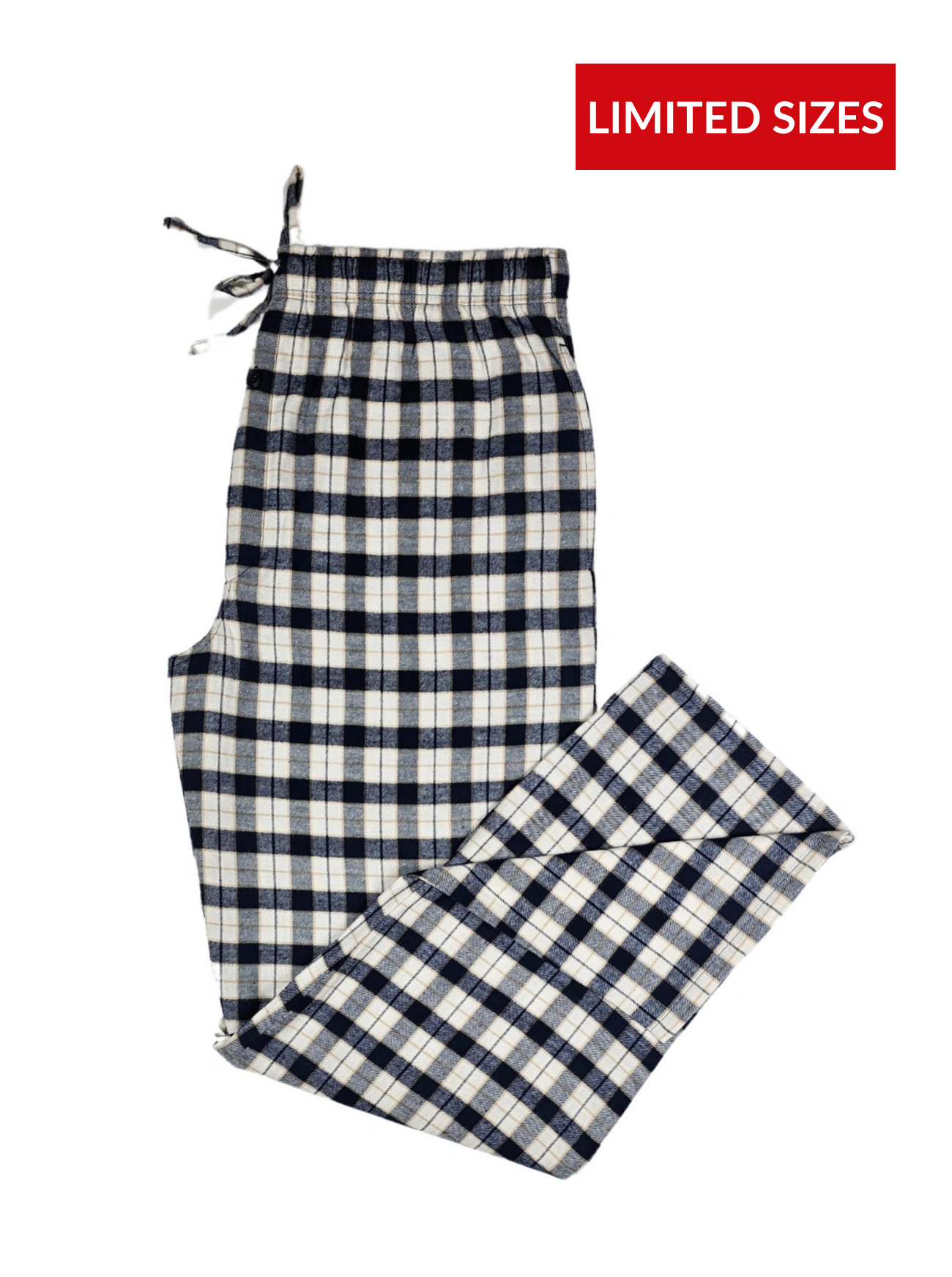Men's Flannel Lounge Pant in Navy and Cream with Gold Accent
