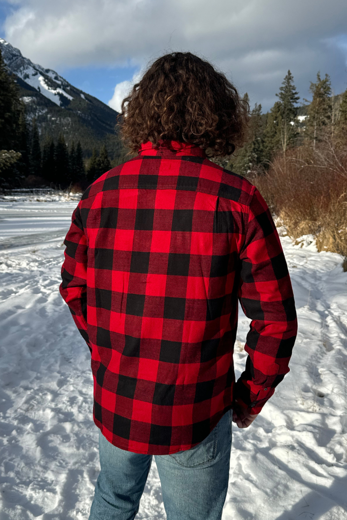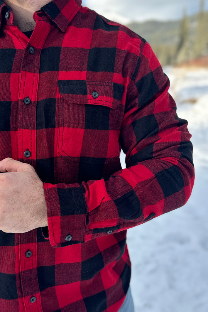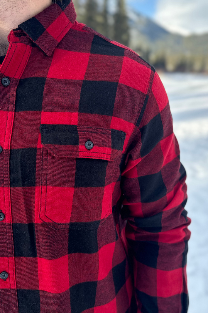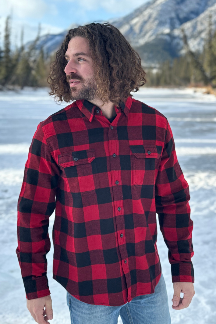 Mens Canadian Classic Flannel Shirt in Red & Black Buffalo Check