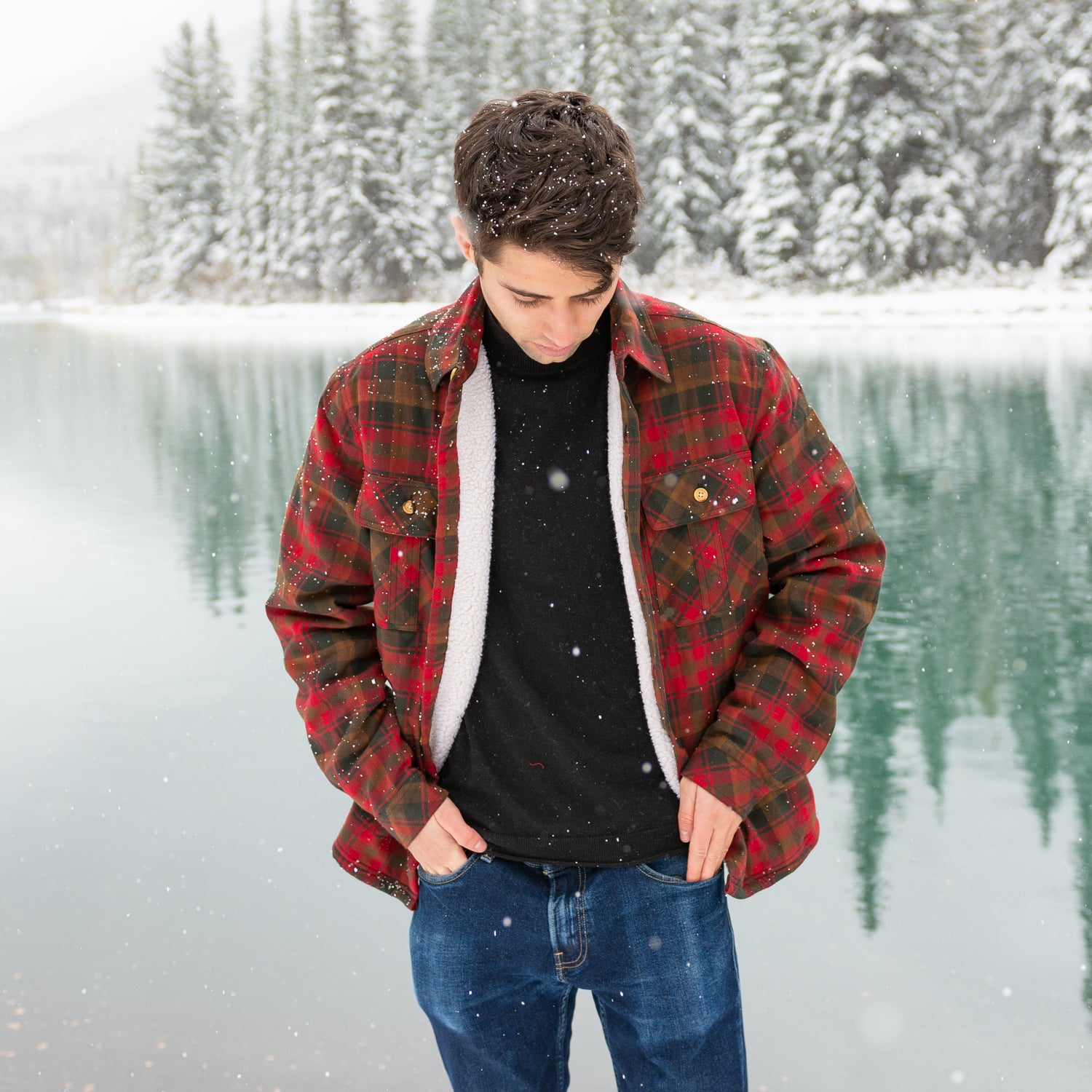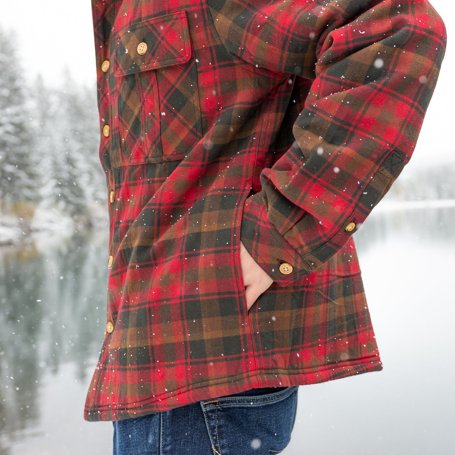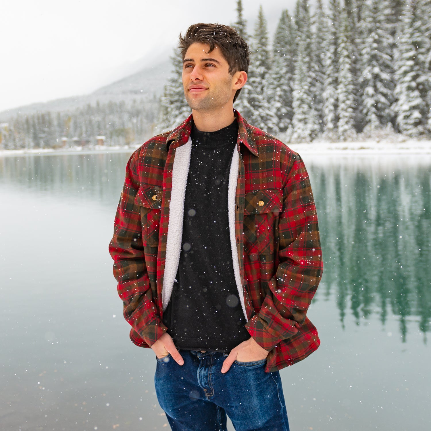 Sherpa Lined Flannel Shirt Mens Maple Leaf Tartan