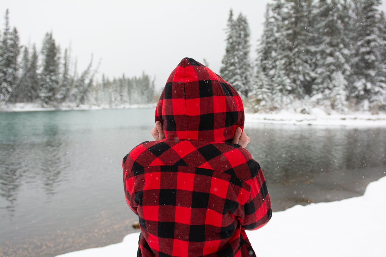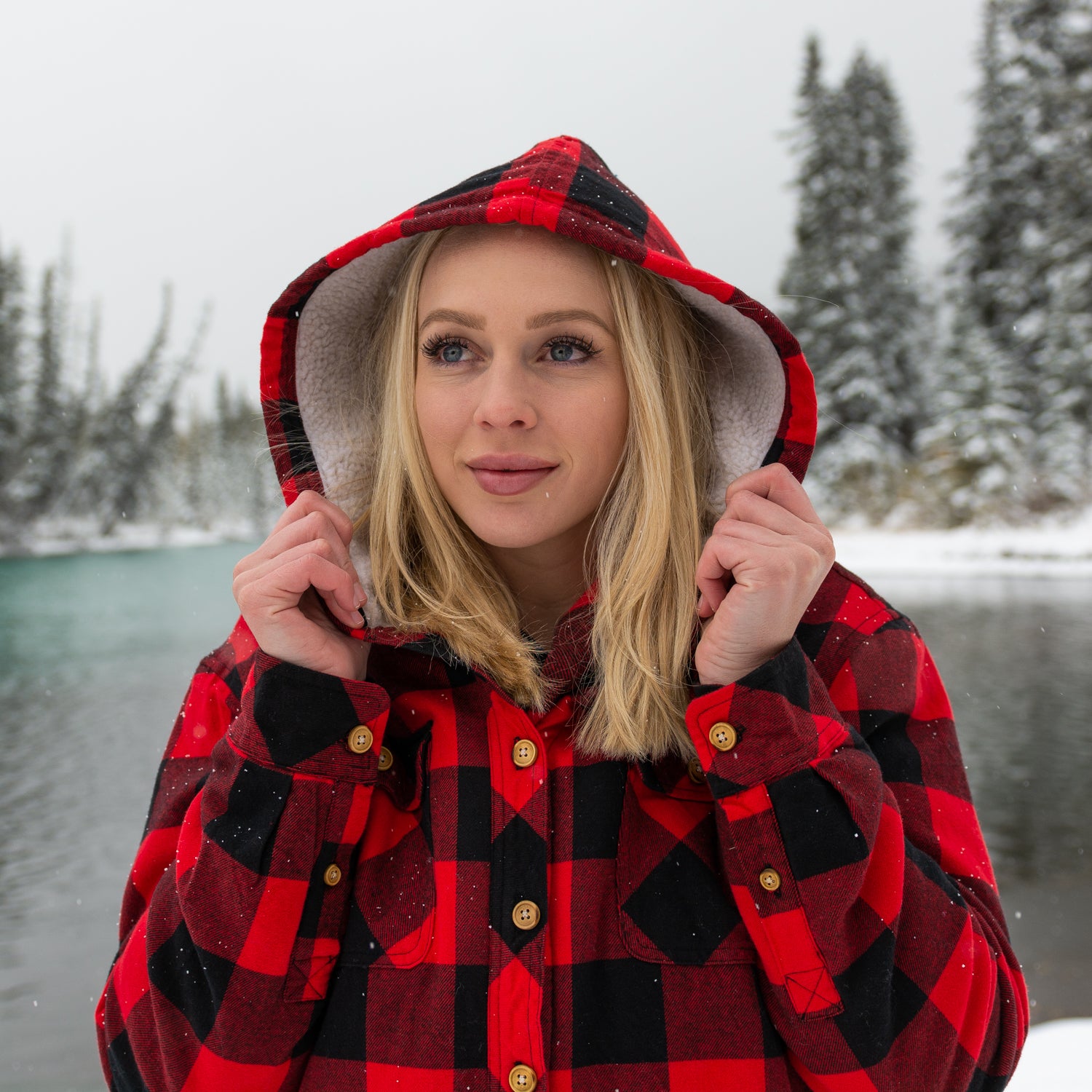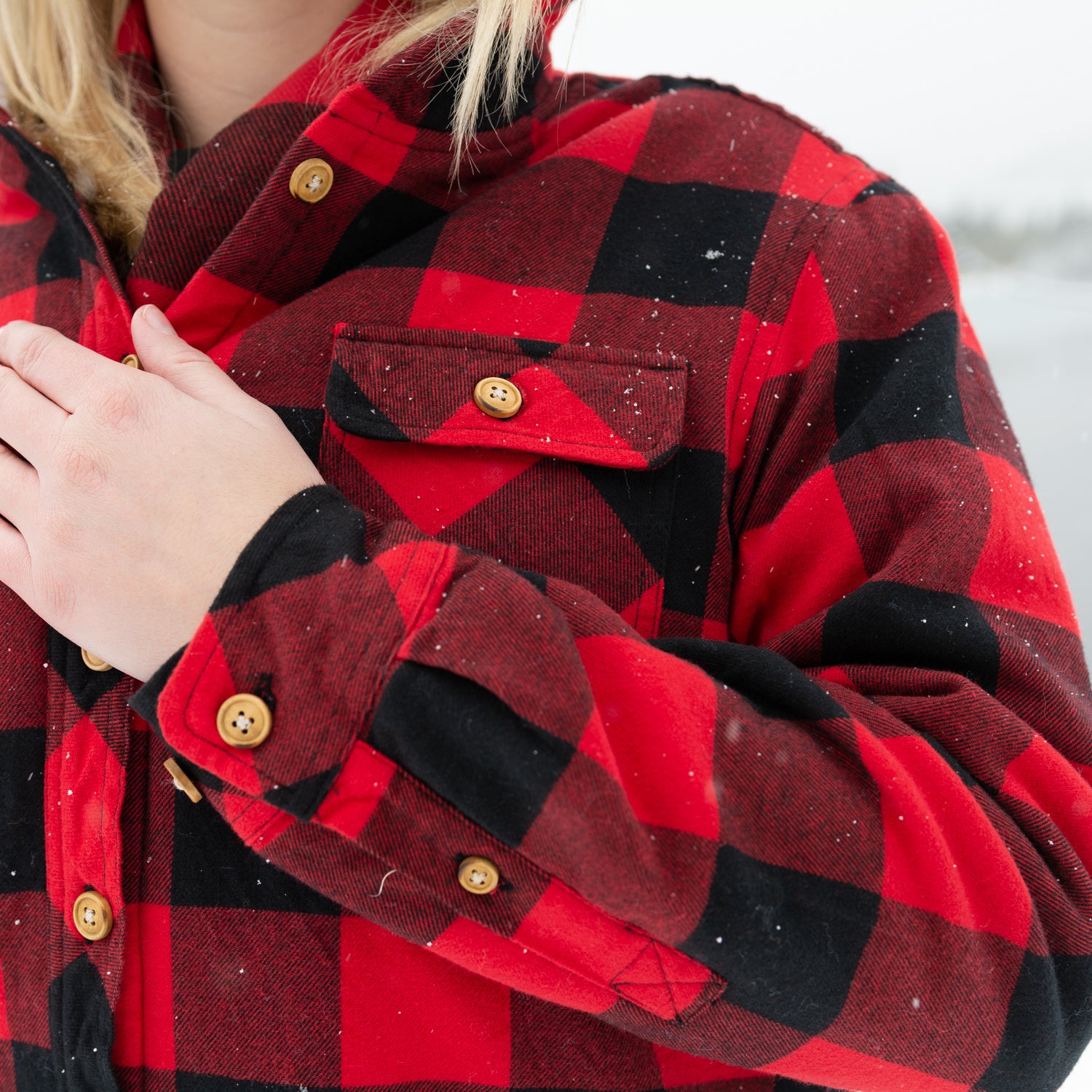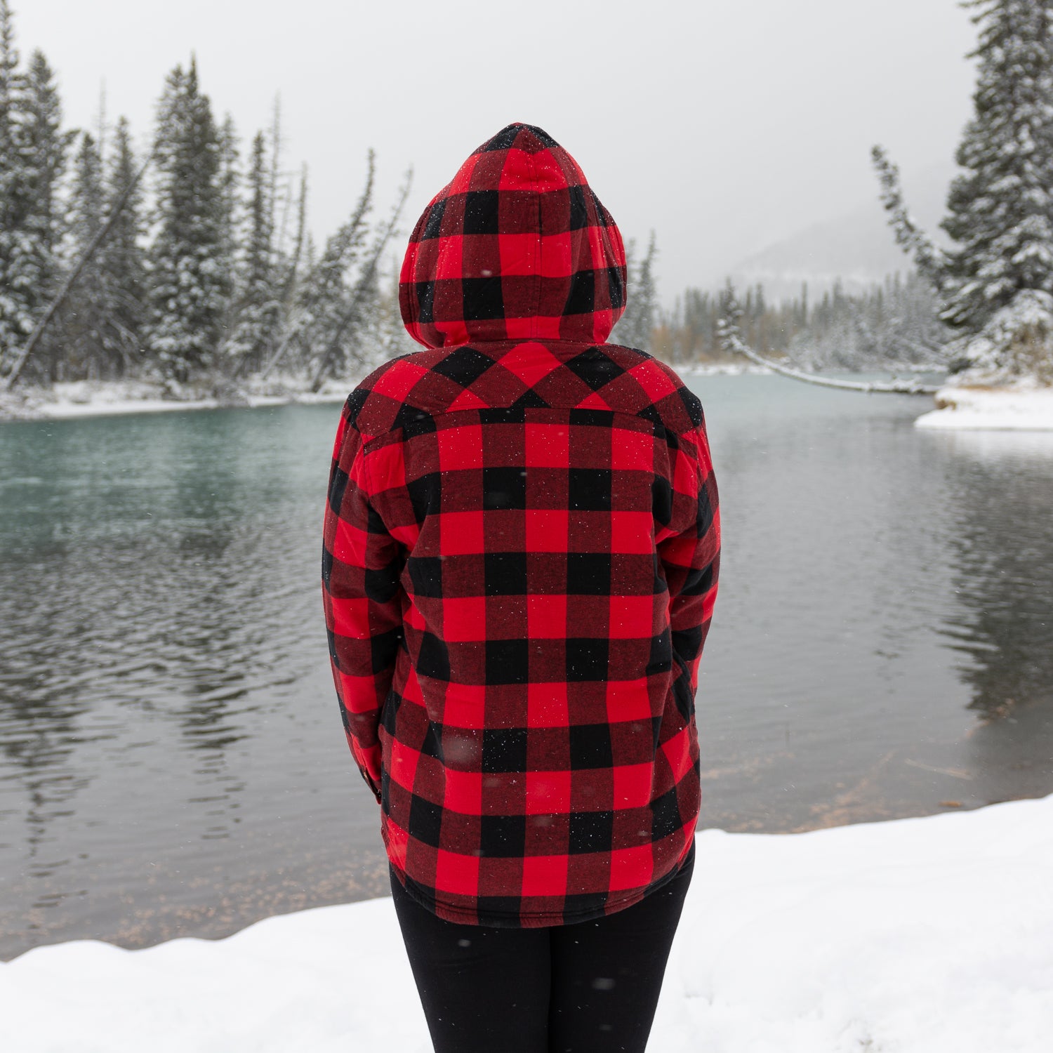 Flannel Sherpa Hooded Jacket in Red and Back Large Buffalo Check
