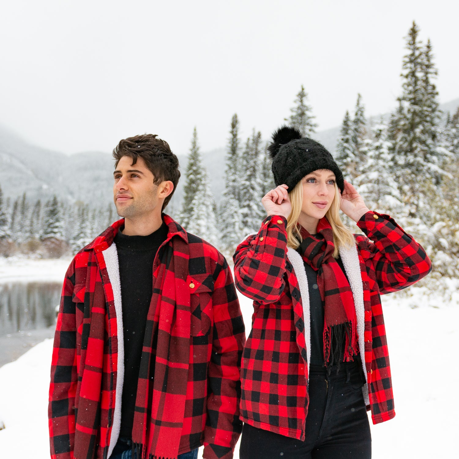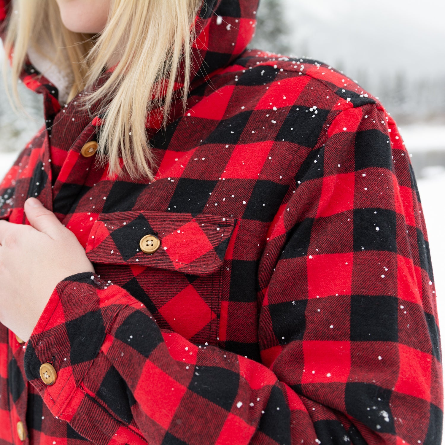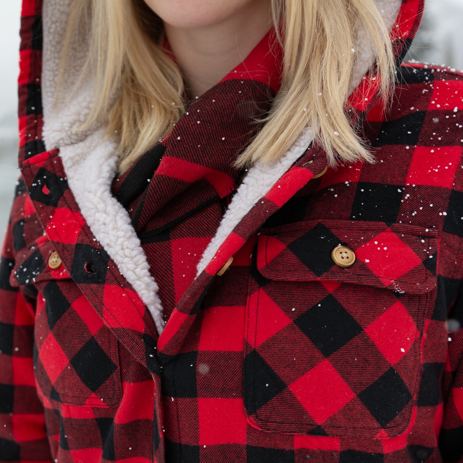 Flannel Sherpa Hooded Jacket in Small Red and Black Buffalo Check