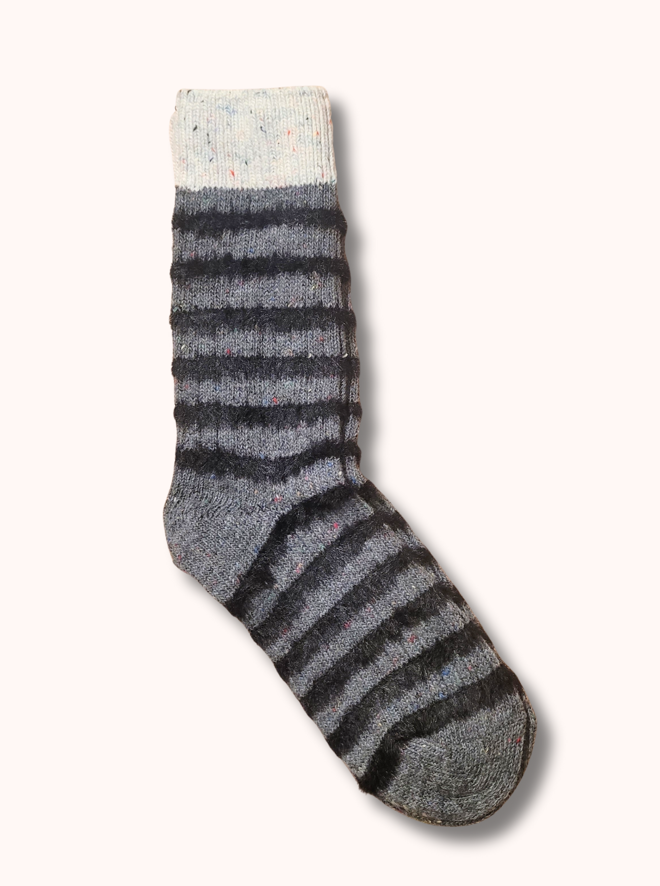 Ladies Horizontal Stripes Fleece Socks - Grey and Charcoal