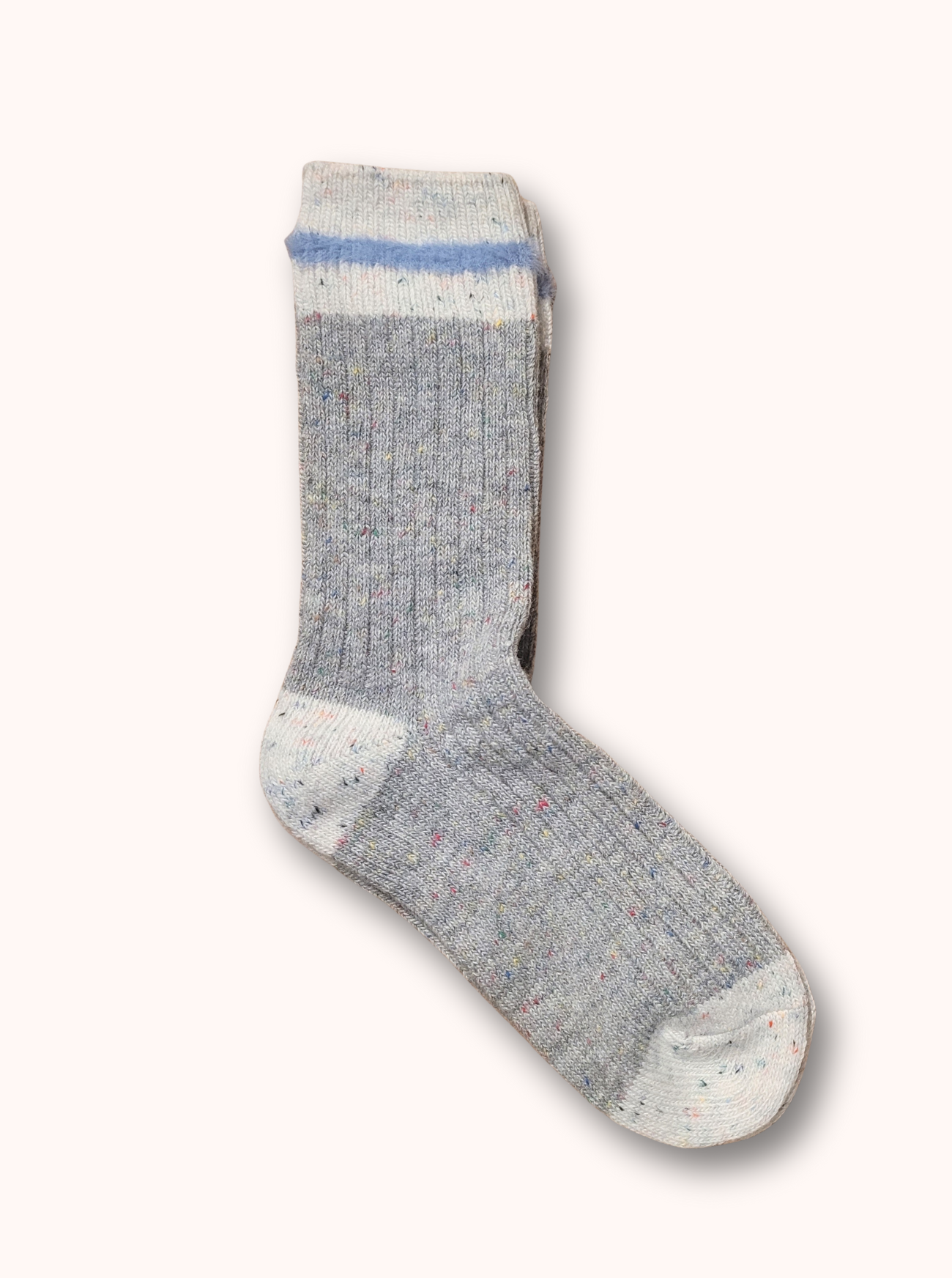 Ladies Colour Block Wool Socks - Grey and Light Blue