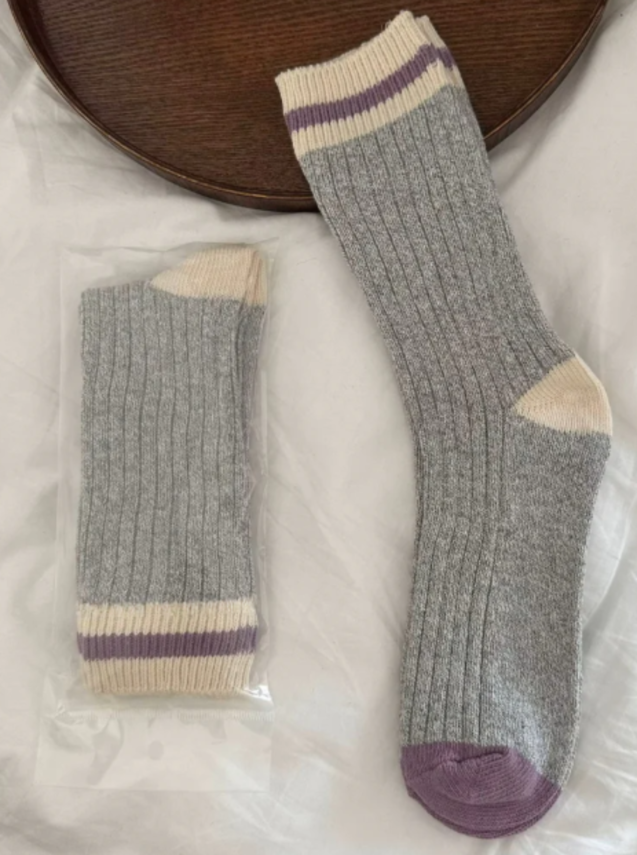75% Wool / 20% Polyester / 5% spandex / Grey and Purple