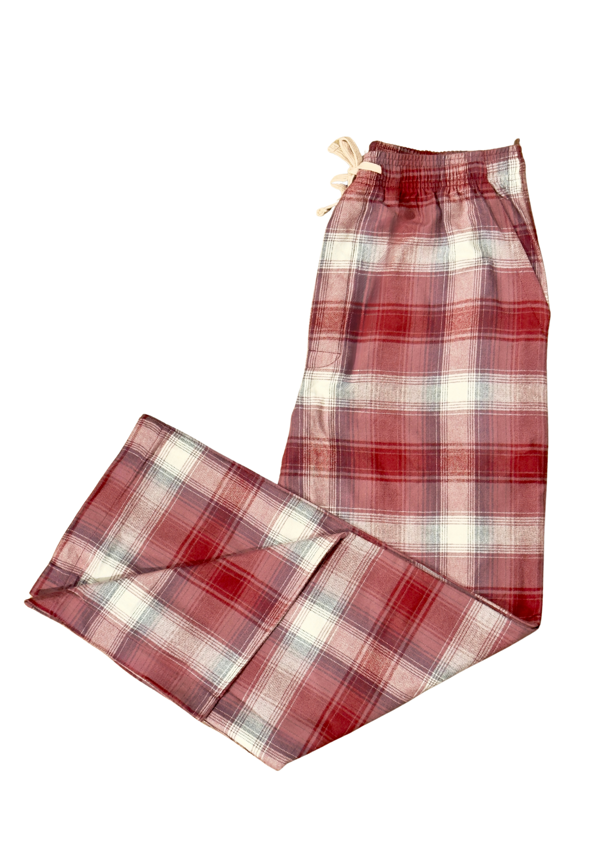 Ladies Flannel Lounge Pants in Burgundy and Rose Plaid