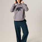 A cozy adults hoodie. Made from a soft cotton-blend fleece with a kangaroo pocket and hood for extra warmth. The perfect extra layer for any adventure!