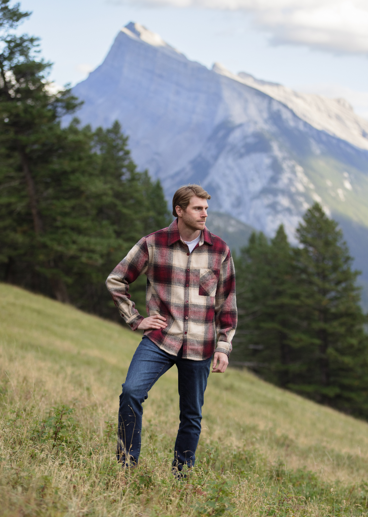 Cut on a man's pattern (wider shoulders, narrower hips).