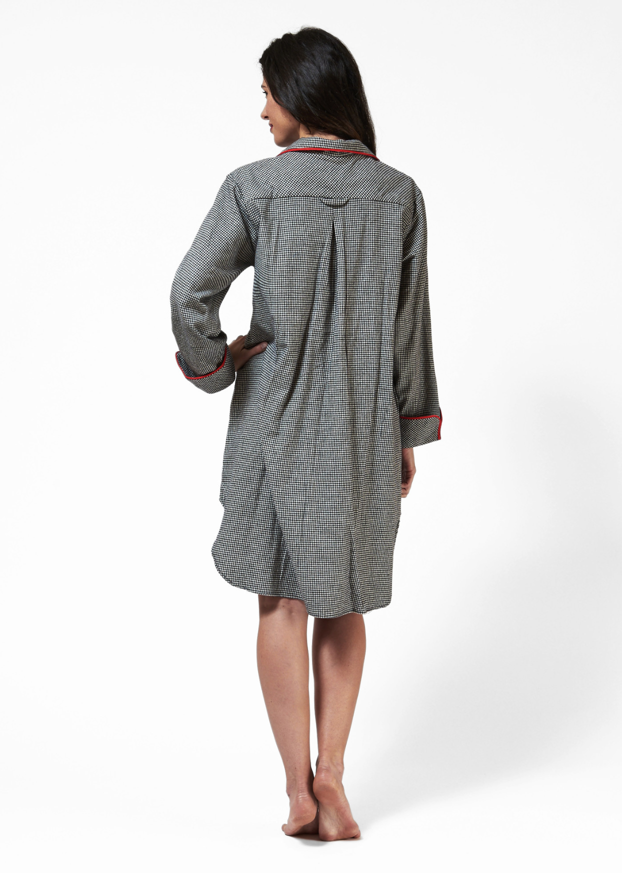 Houndstooth Flannel Knee Length Nightshirt with Red Piping Accent
