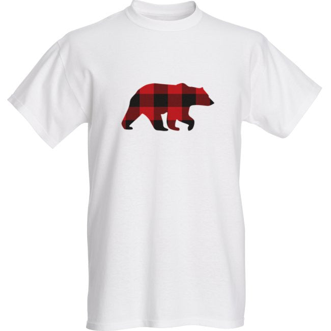 Comfort White and Red Buffalo Check Bear T-Shirt